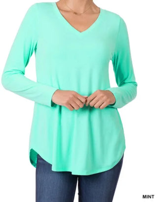 Long Sleeve V-Neck Round Hem Top *Final Sale*