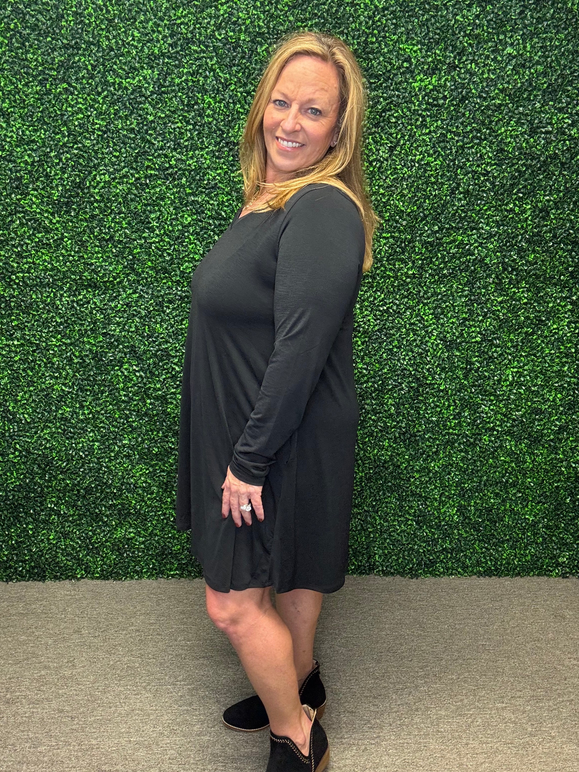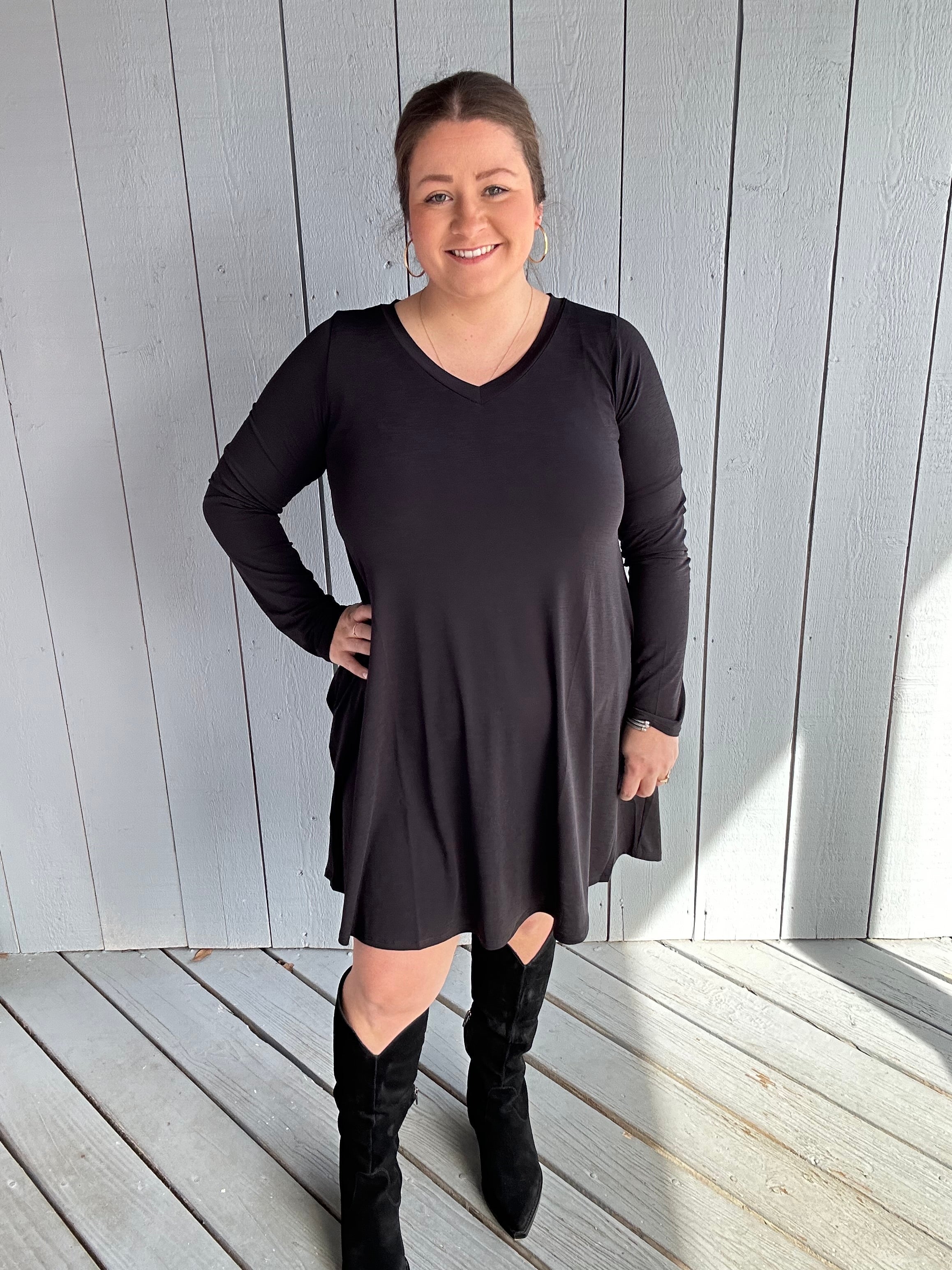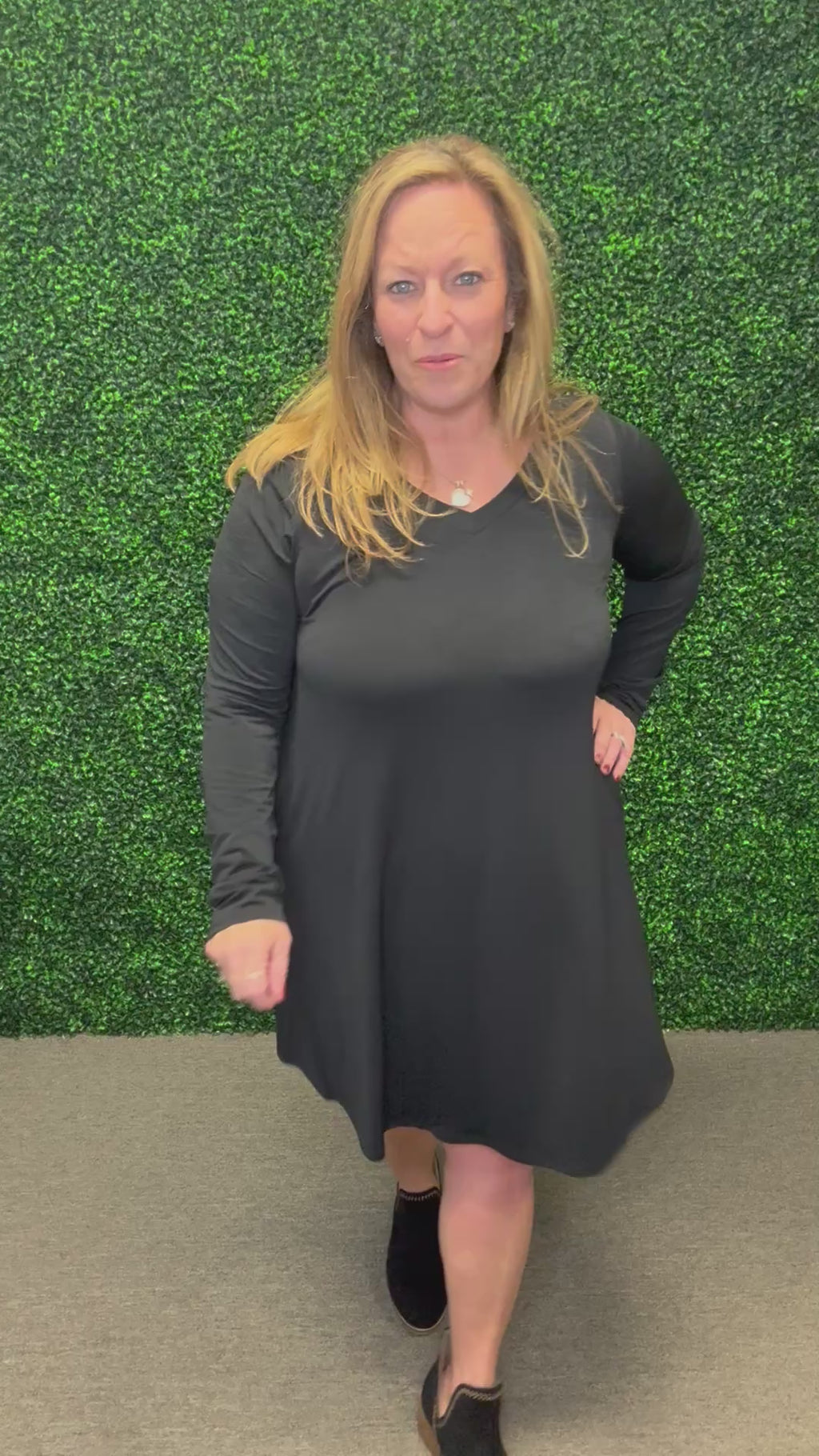 We love this new arrival by Sew In Love — a classic, versatile long-sleeve dress that’s destined to become your go-to closet staple. Crafted from a slinky jersey-like fabric with a smooth interior and lightly textured exterior, this dress feels as good as it looks. The flattering V-neckline, slim sleeves, and slight A-line silhouette create an easy-to-wear style that transitions effortlessly from casual days to dressed-up evenings.