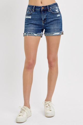 Judy Blue Medium Wash Two Button Distressed Dad Shorts
