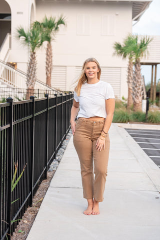 Whimsical, feminine, and effortlessly charming—this new She & Sky blouse is the perfect neutral-with-a-hint-of-color piece to carry you into the fall and winter seasons and beyond. The baby blue background paired with taupe and camel florals creates a soft, timeless look, while tan contrast piping adds an elevated touch. It pairs perfectly either some dark jeans or slacks.