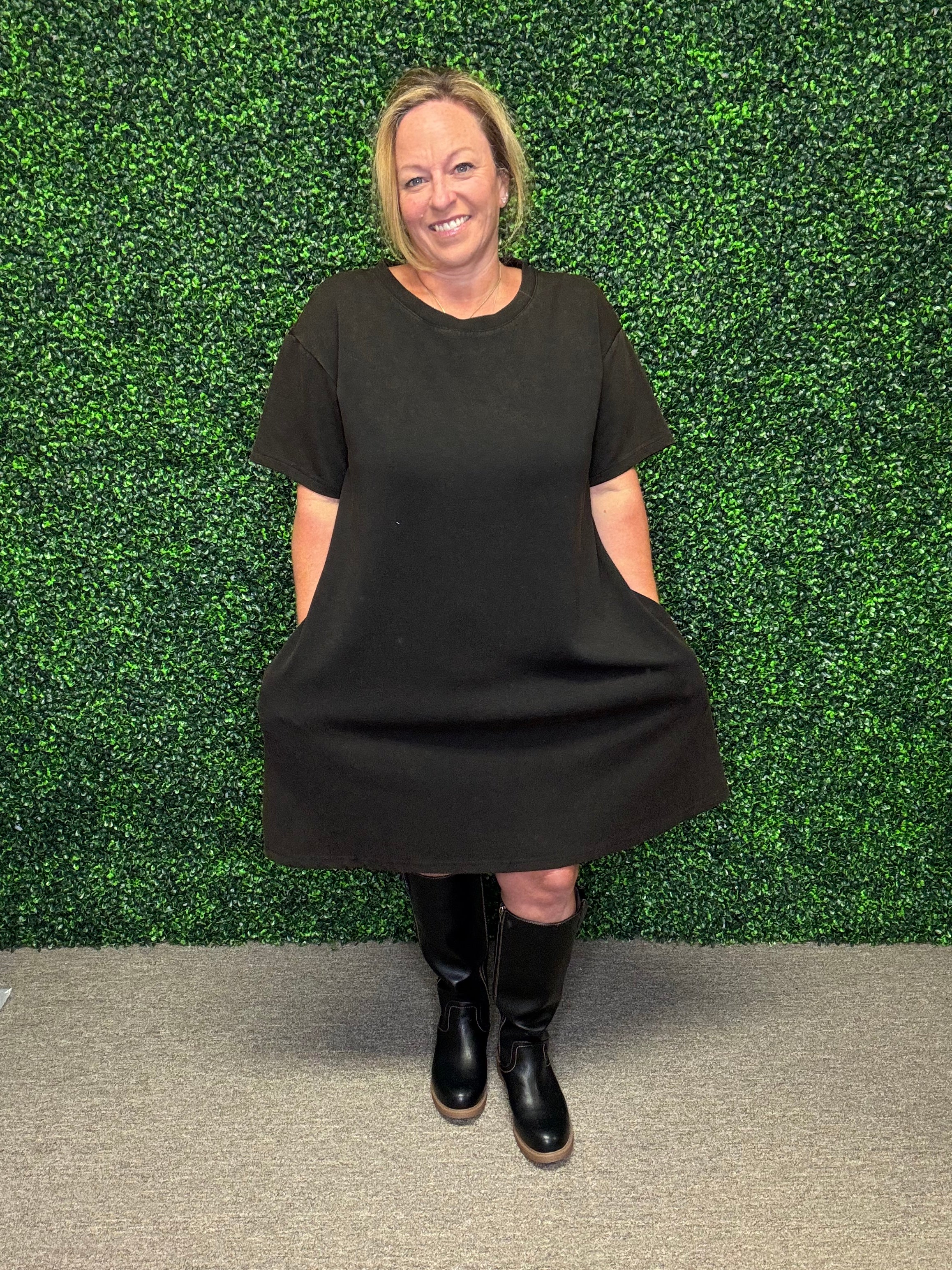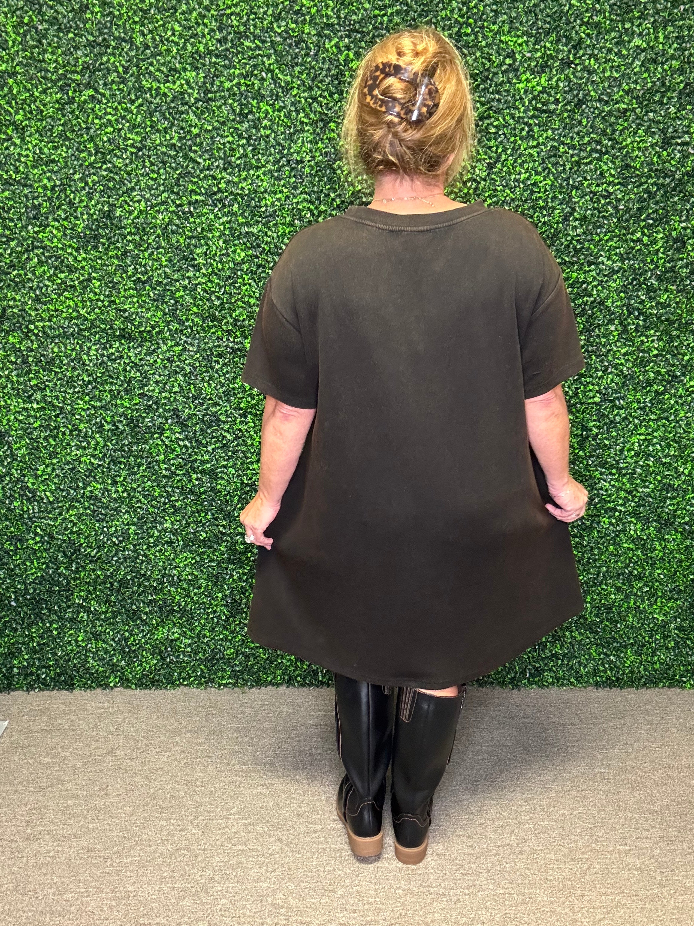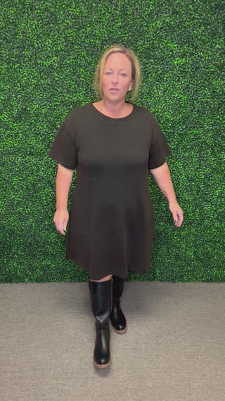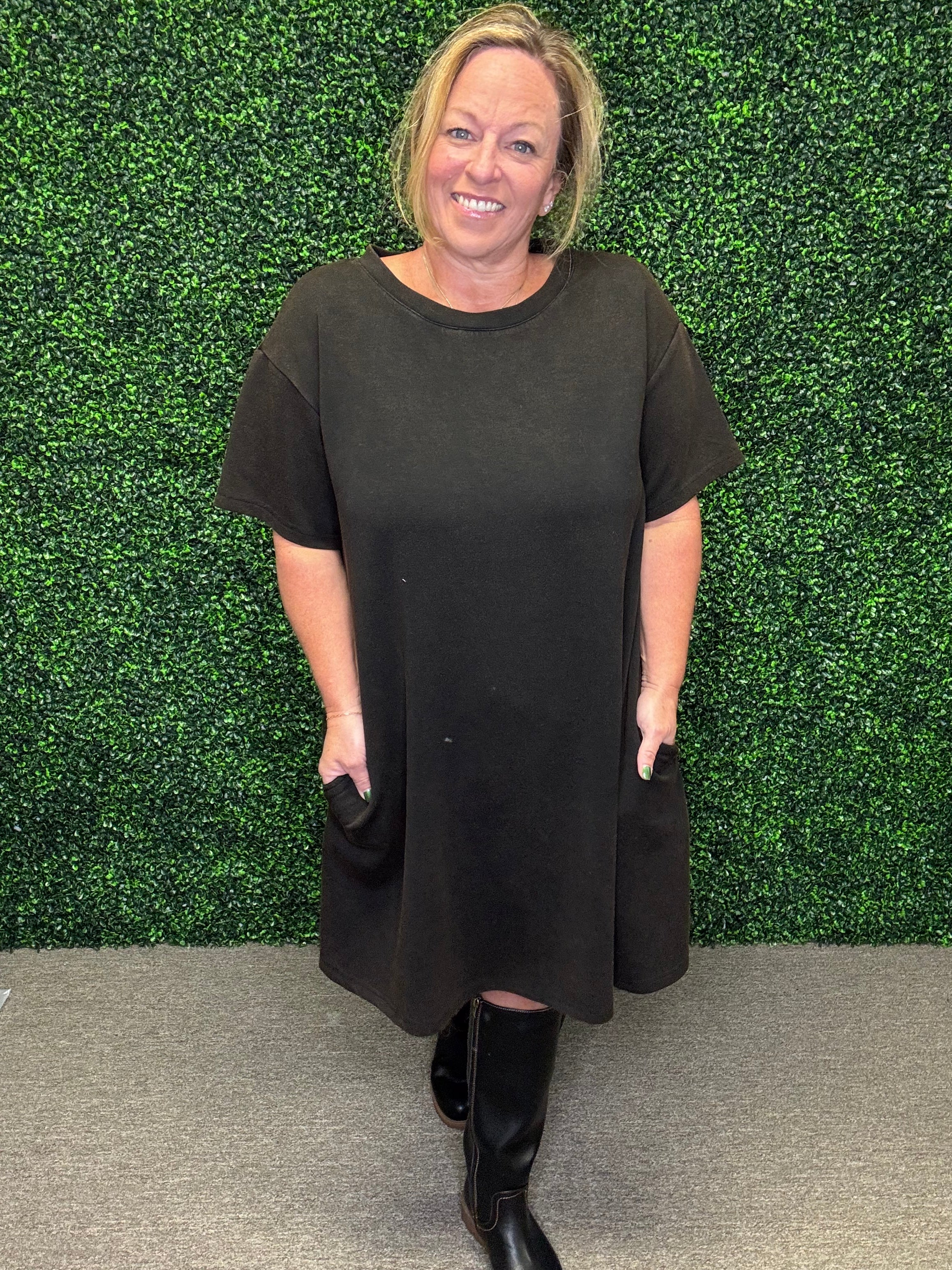 Easy, breezy, and made for everyday wear — this washed knit dress is the definition of casual chic. With a soft round neckline, relaxed short sleeves, and handy side pockets, it’s the perfect throw-on piece that looks cute while keeping you comfortable all day long.