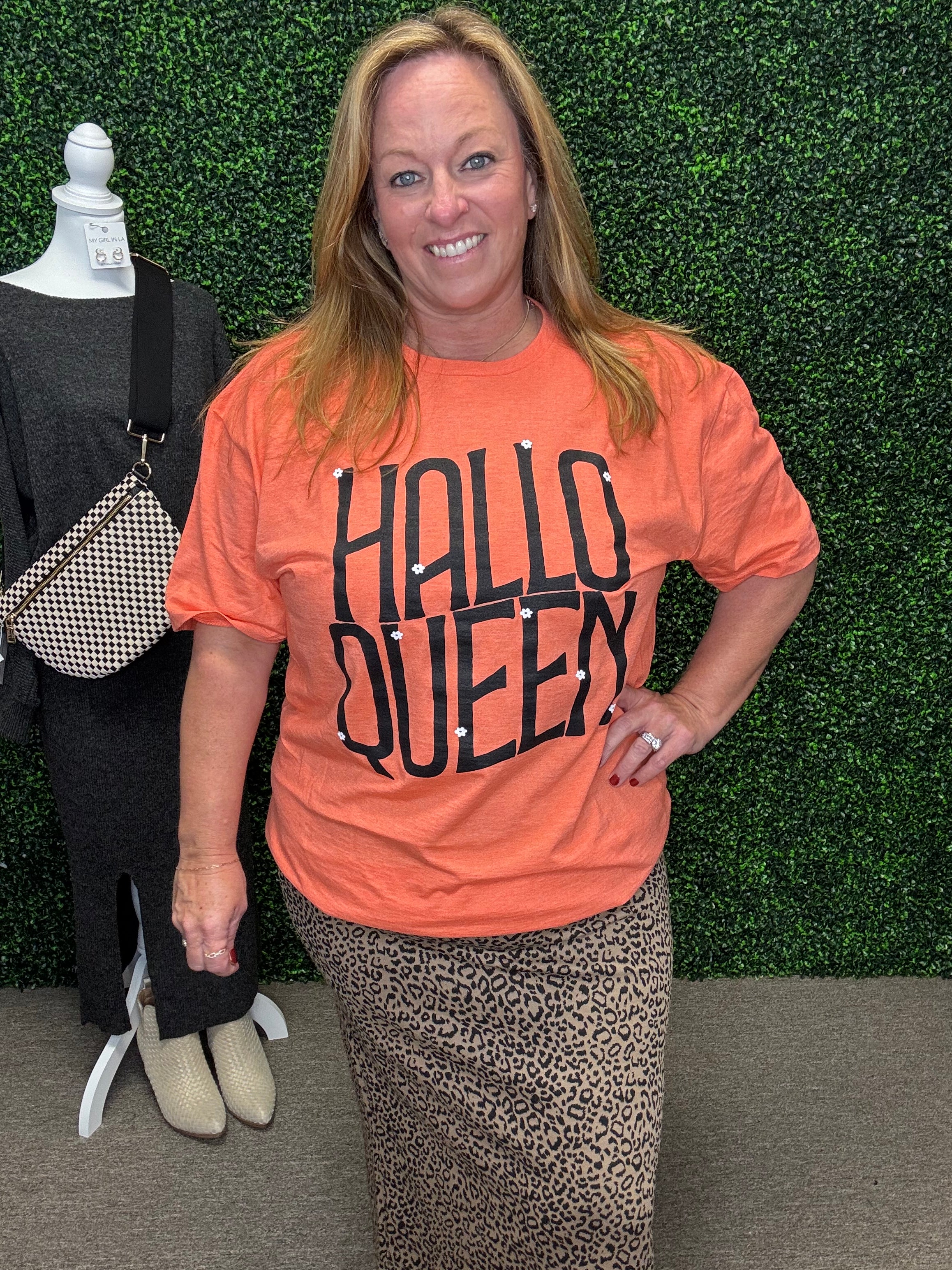 Our HalloQueen Tee is the cutest way to celebrate spooky season! This festive tee features bold black lettering on a vibrant orange background — simple, fun, and perfect for any Halloween enthusiast. Printed with direct-to-garment technology on high-quality Bella Canvas tees, it’s durable, soft, and made for all your fall festivities.