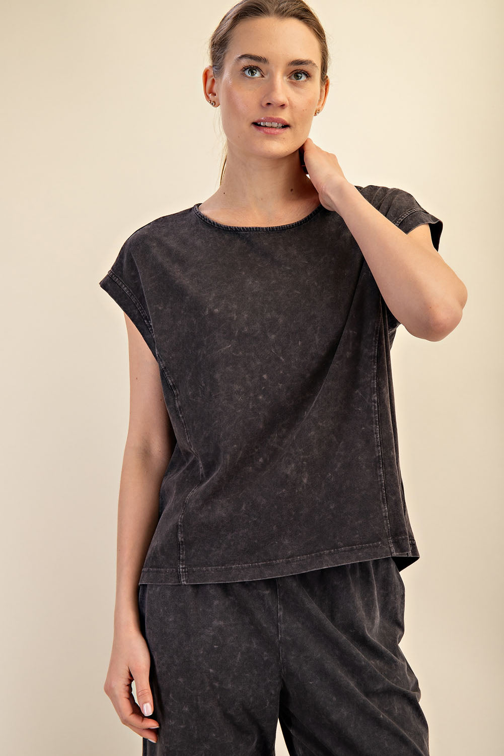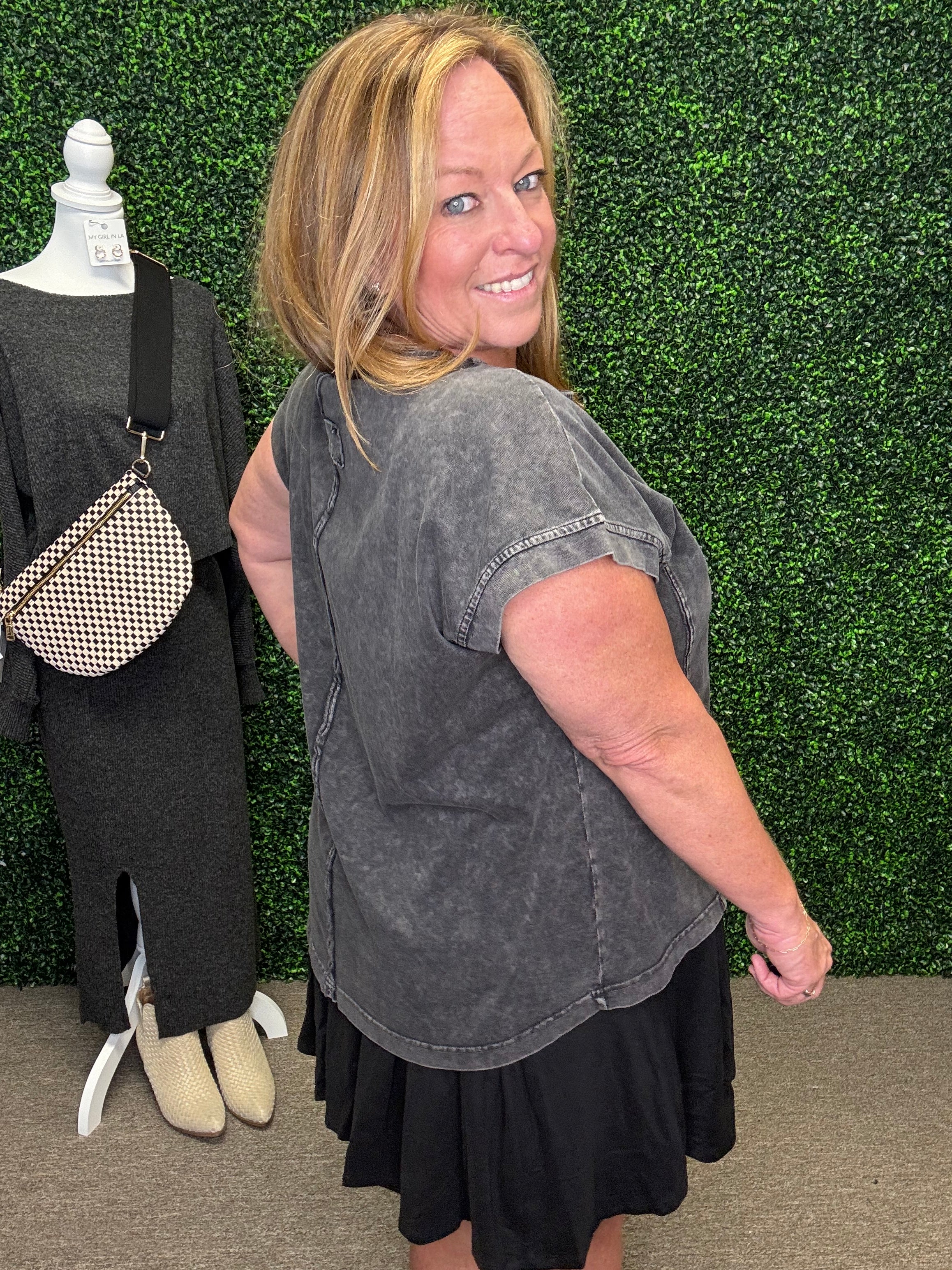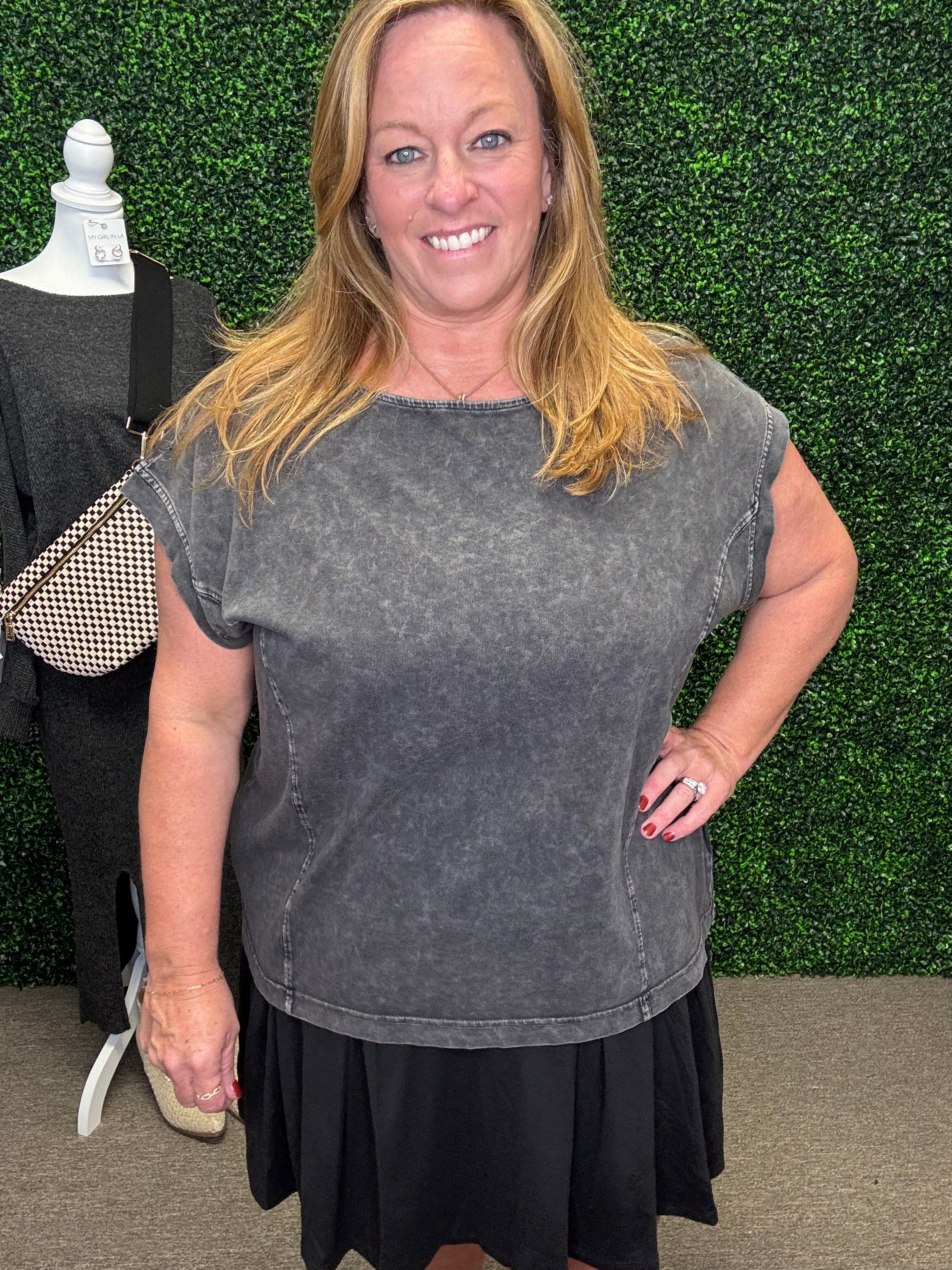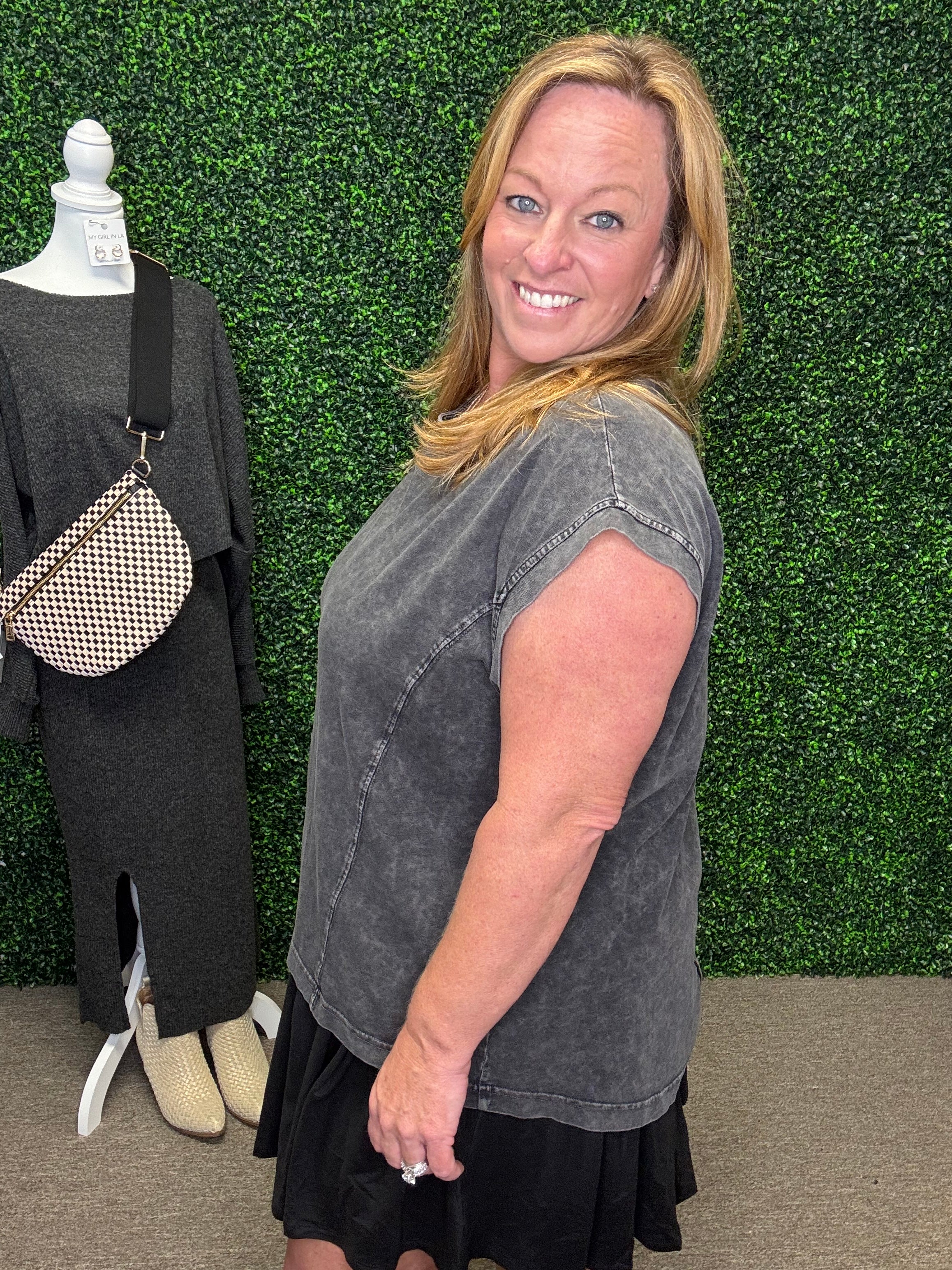 A classic tee with a classic fit! A good tee is always a must for days at home or out and about! Embrace effortless style with this mineral-washed cotton short sleeve top. Designed with an oversized fit and a high-low hem, it offers a relaxed, lived-in feel perfect for casual and versatile wear.