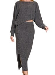 Introducing your new favorite statement outfit - our 2 piece set: "Ribbed Asymmetric Hem And Sleeve Top & Skirt". Featuring a unique ribbed fabric, playful asymmetry, and a flattering silhouette, you'll turn heads with ease. Don't just take our word for it - get ready to rock this set!