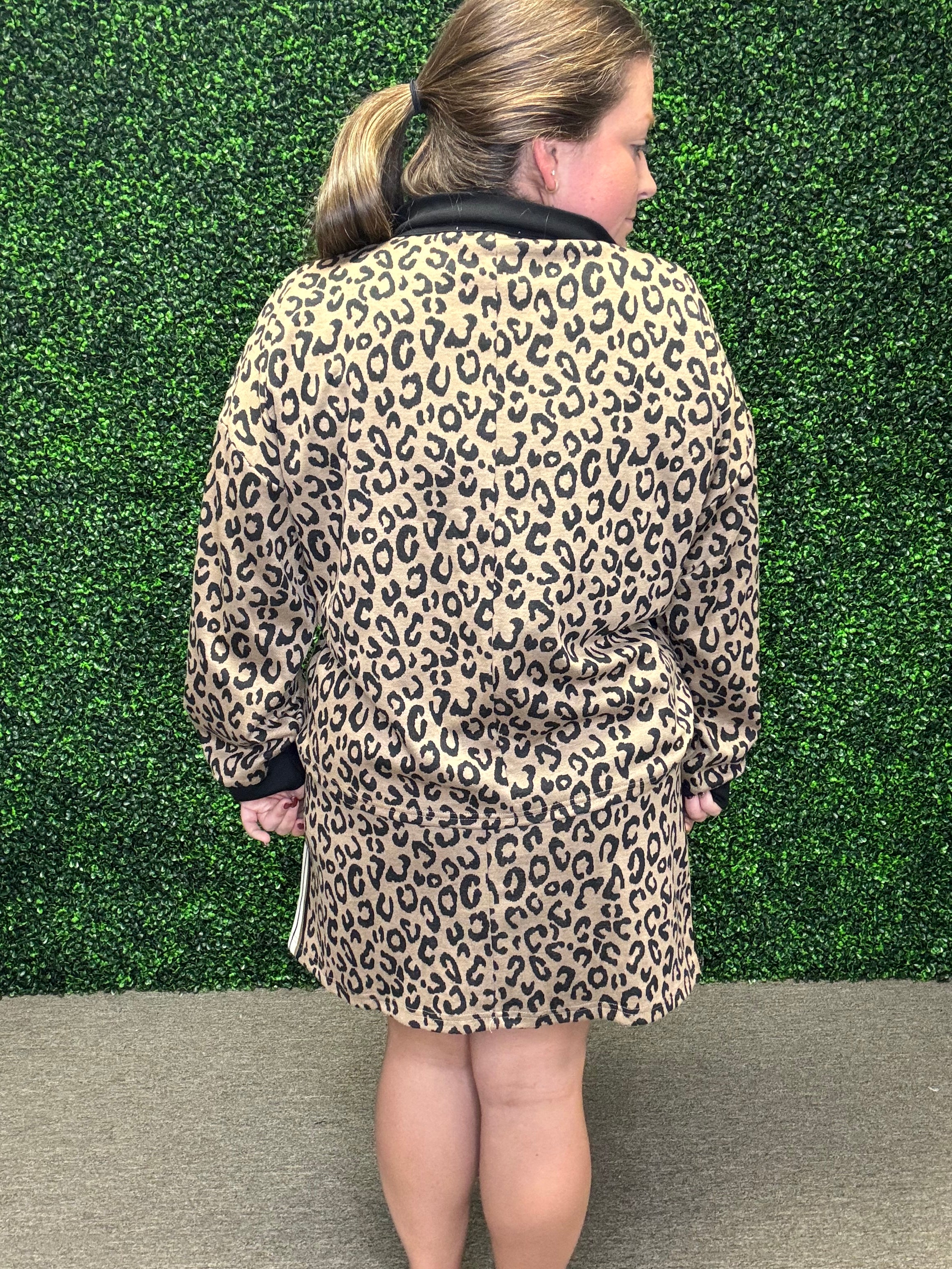 A chic twist on a casual favorite, this leopard print knit top by She + Sky adds comfort and a bold pop of style to your everyday wardrobe. Featuring a half-zip collared neckline and ribbed band detailing, it’s designed to be both cozy and elevated. Pair it with the matching bottoms (sold separately) for a coordinated look, or wear it with denim and sneakers for an effortless vibe.