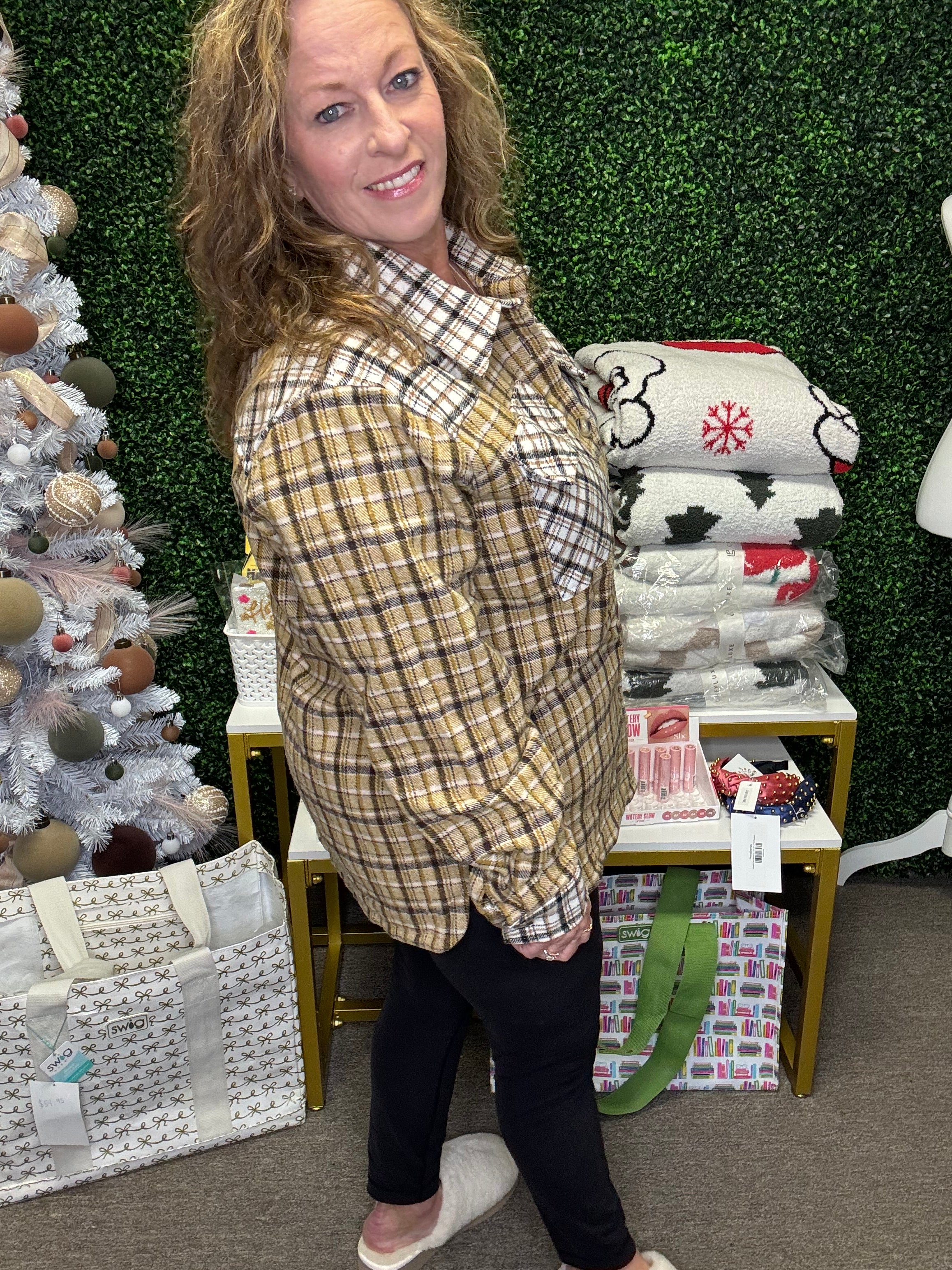 Get cozy and stylish with this must-have plaid colorblock shacket by Umgee! Combining the laid-back comfort of a shirt with the warmth of a jacket, this piece is perfect for chilly days. Designed with chest pockets, tortoise shell buttons, and a flattering relaxed fit, it’s the ultimate fashion statement that’s equal parts cozy and cool.