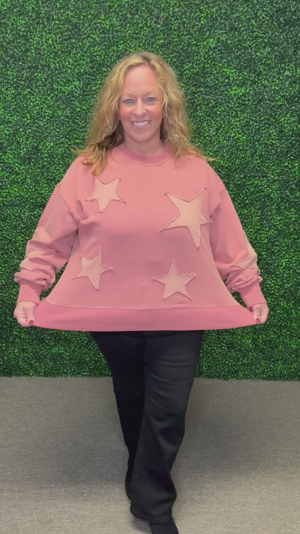 • Shades of pink with sewn-on star detailing on arms and front