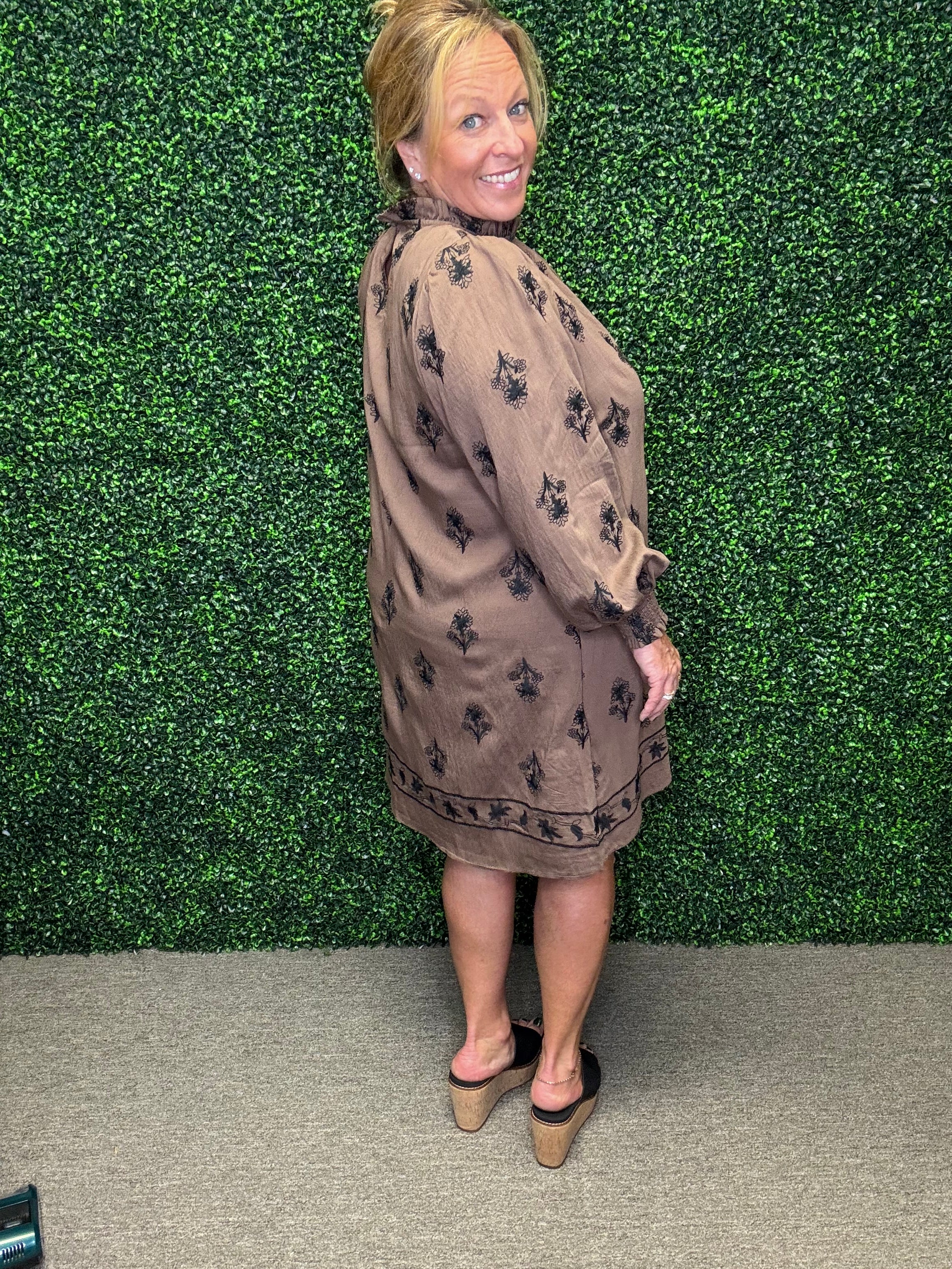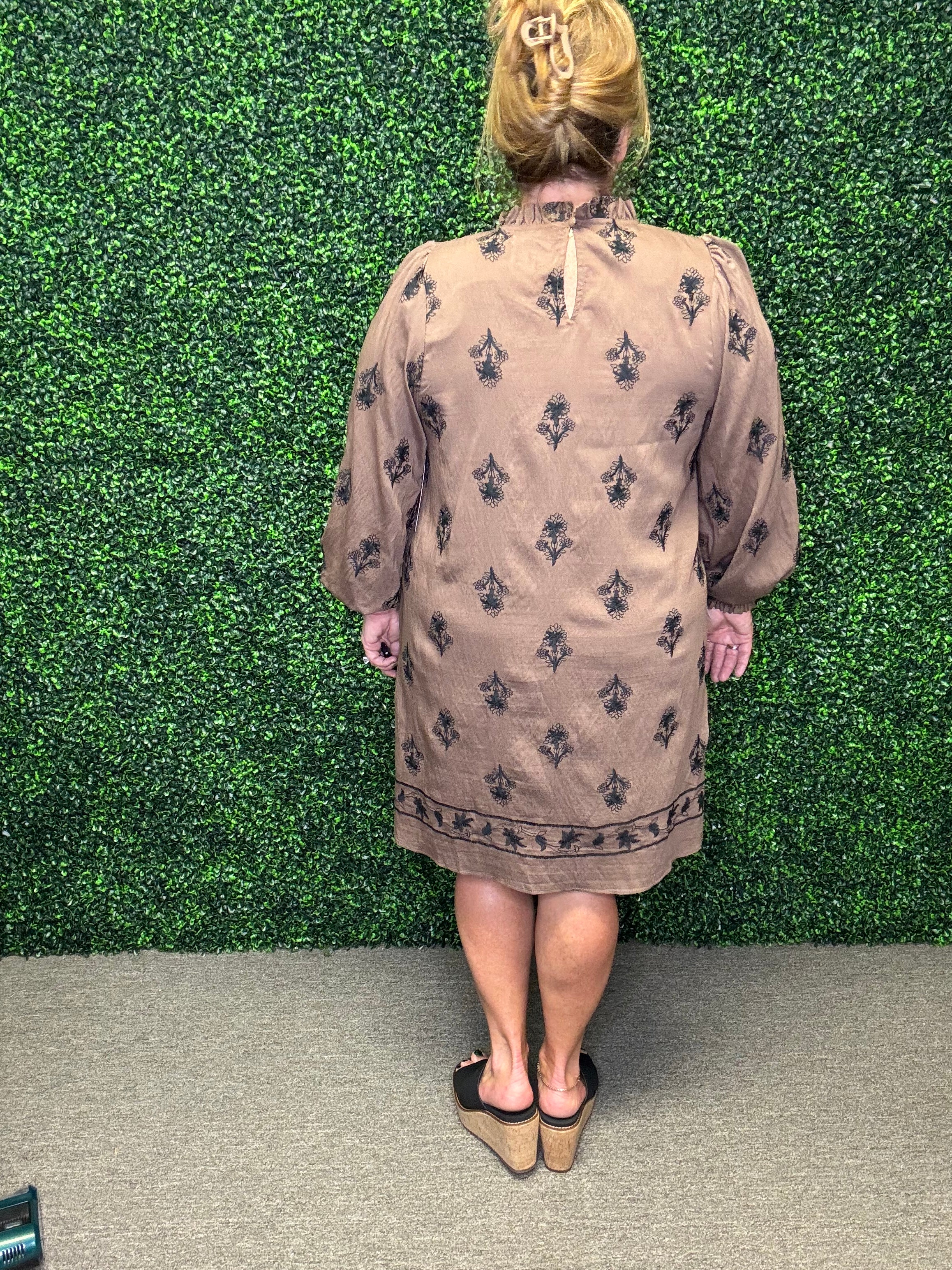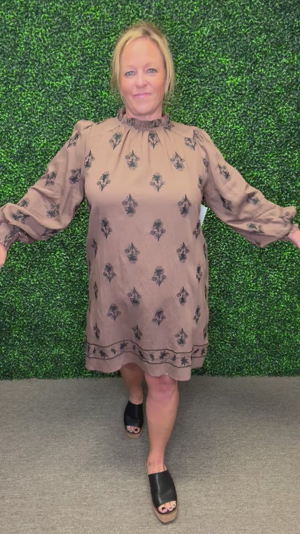 Delicate embroidery and feminine details make this mini dress a timeless piece you’ll reach for again and again. With subtle ruffle trim and long smocked cuff sleeves, it’s perfect for any season and occasion.