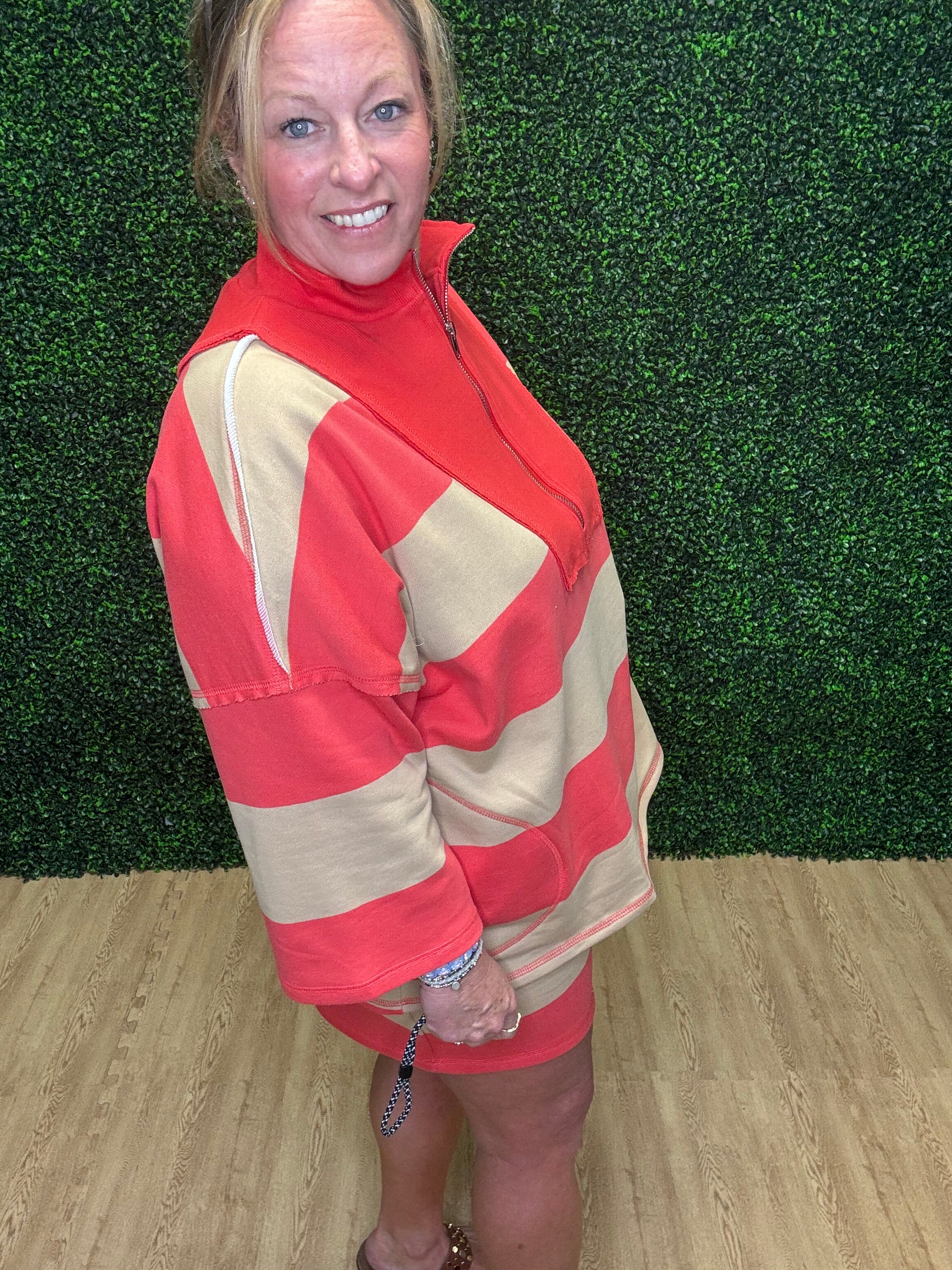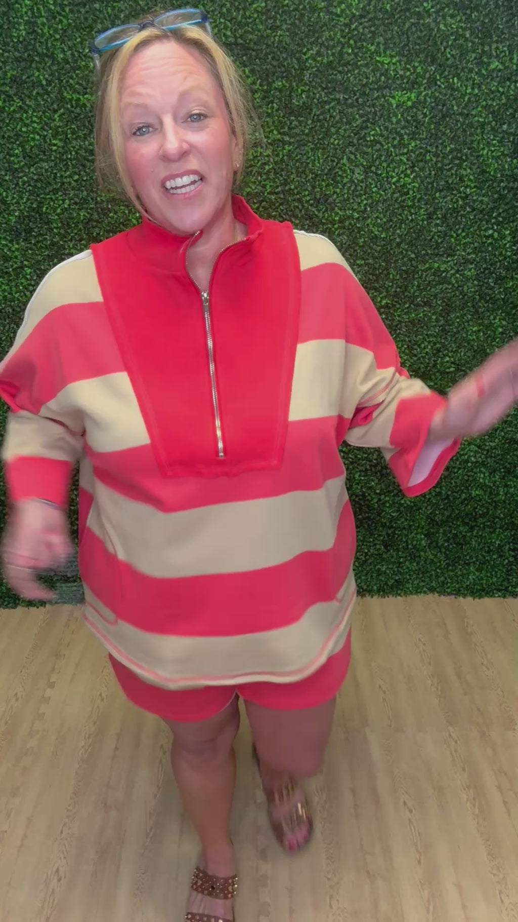 Coral & Sand Striped Half Zip Top-Stitch & Co.