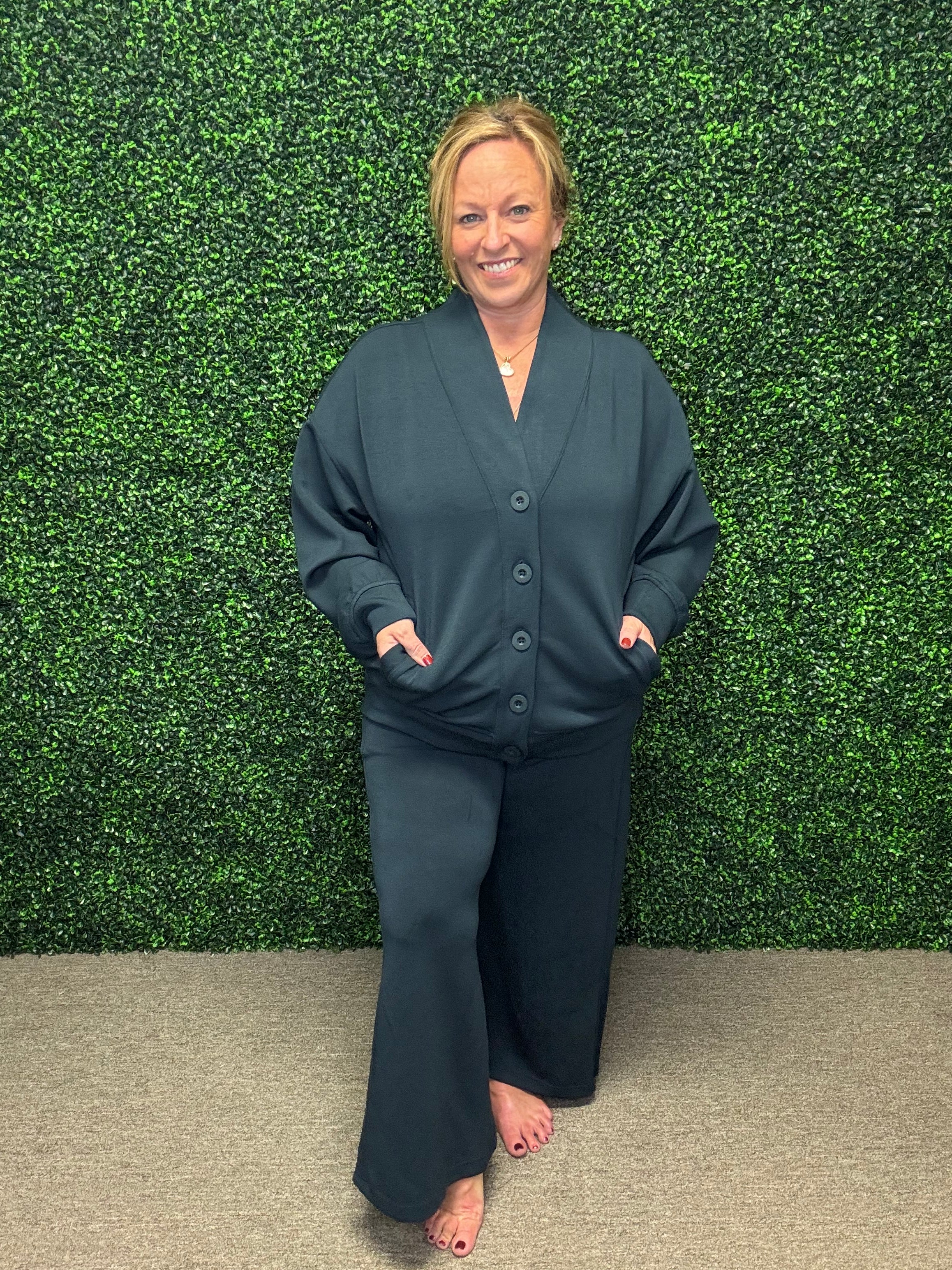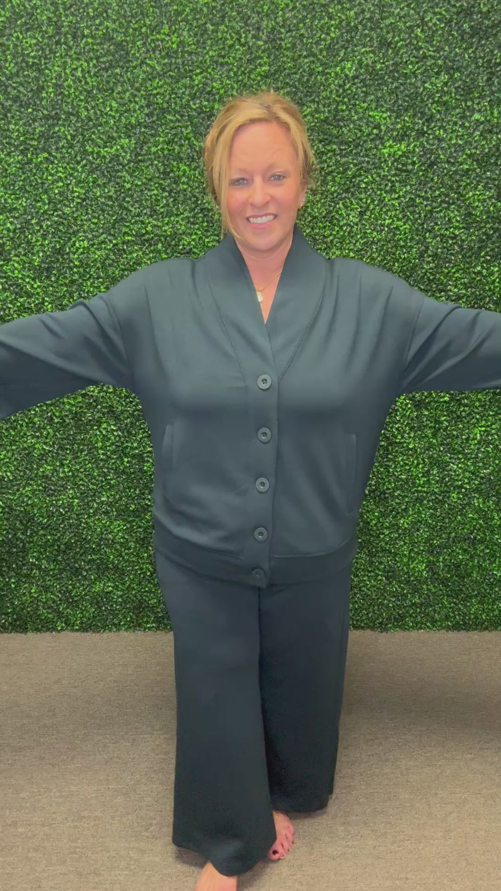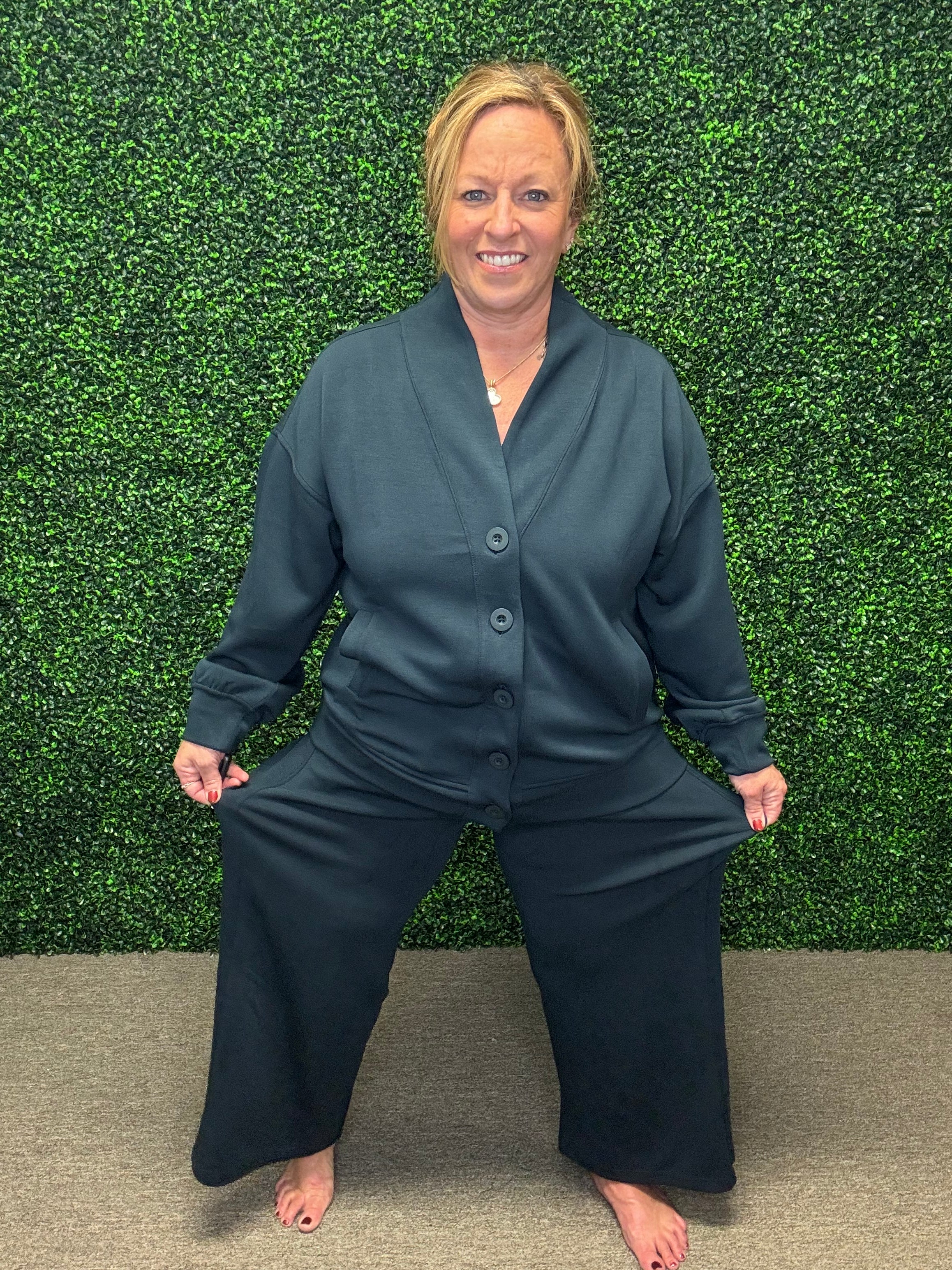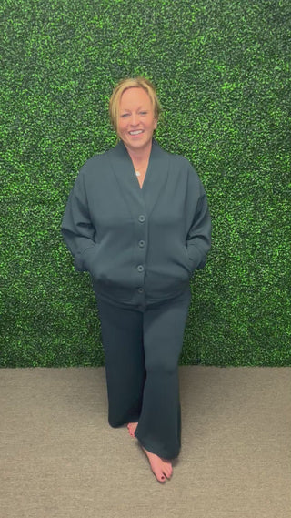 If you’re searching for comfort and chic style all in one, these pants are it! Super soft with that silky-smooth Rae Mode scuba feel, these wide-leg pants are as cozy as they are polished. In a rich dark teal blue, they pair perfectly with our Modal Scuba Cardigan for a complete matching set.