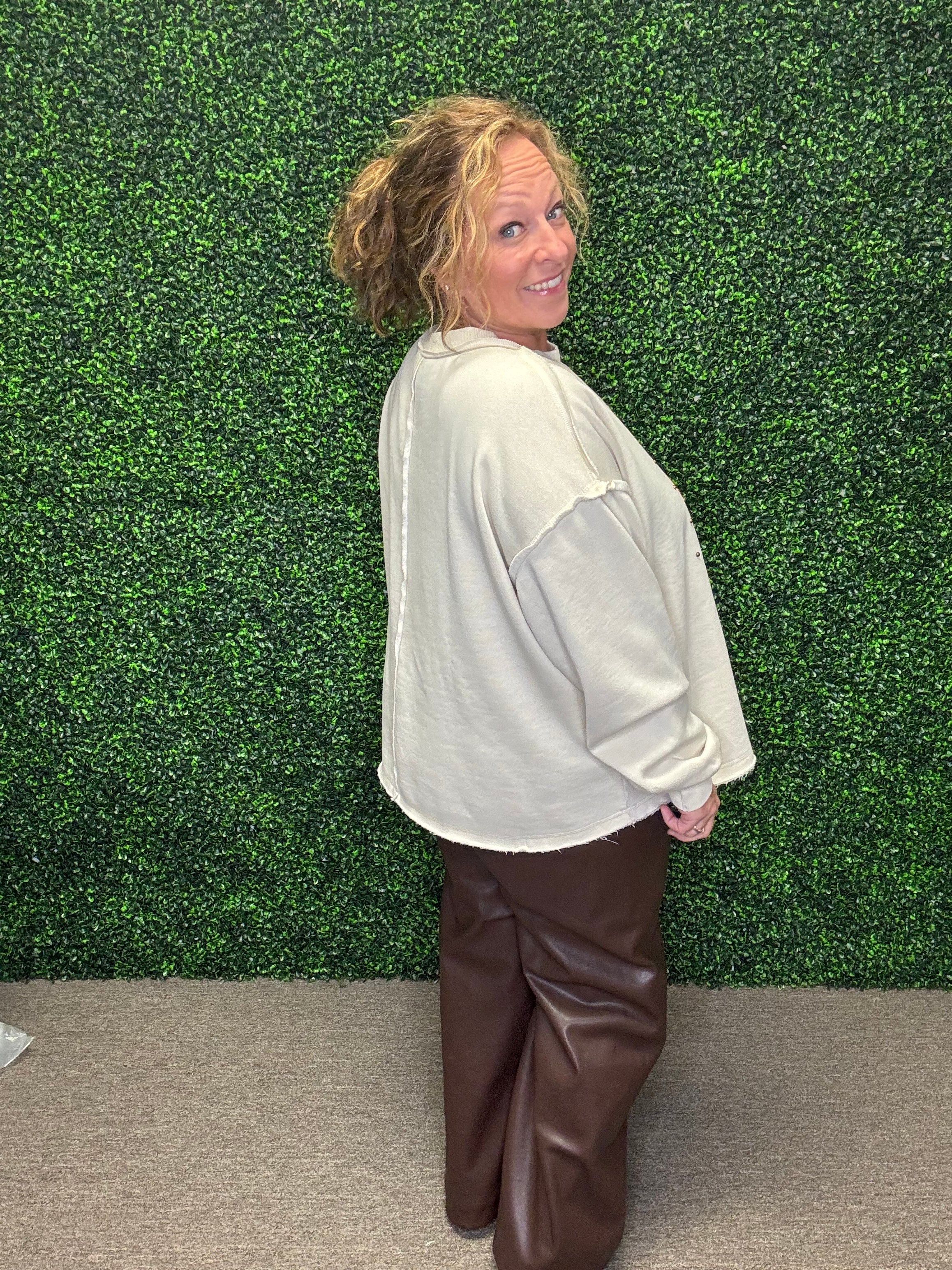 Relaxed, oversized fit for easy styling with jeans or leggings