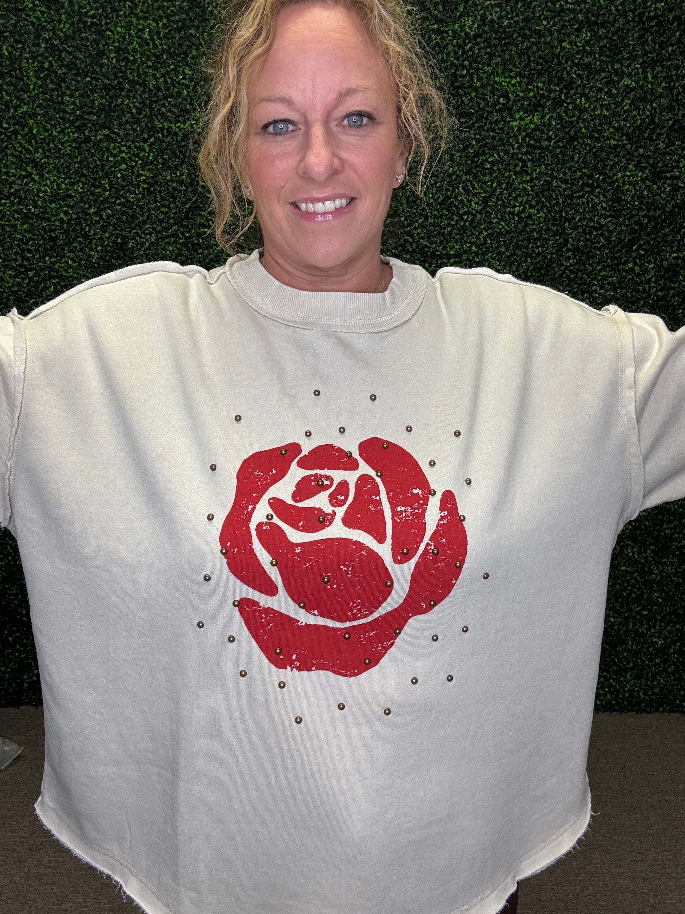 Easel Rose Studded Sweatshirt