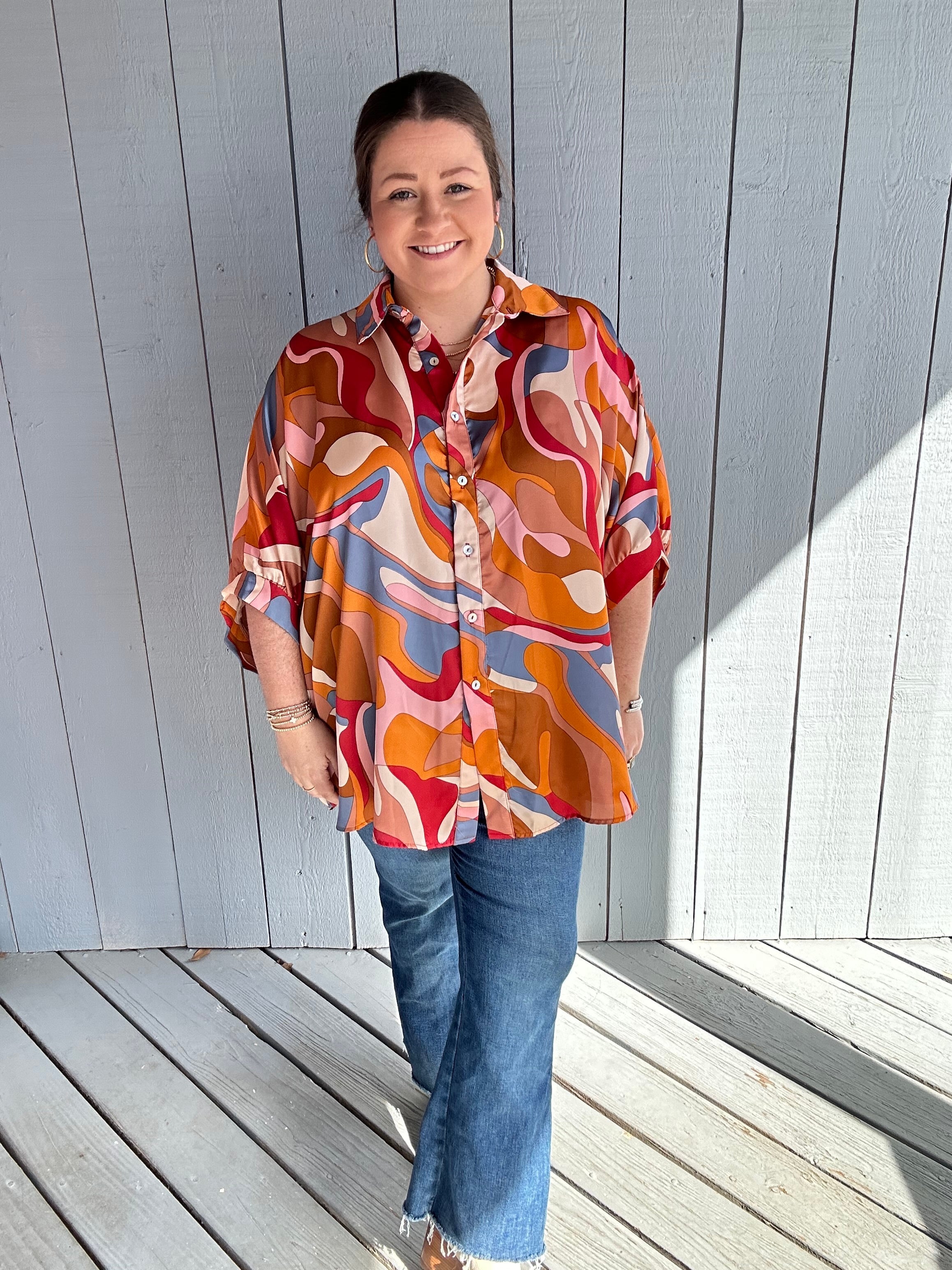 Pair this silky beauty with tailored trousers or a pencil skirt and heels for a chic, elevated look. For an effortlessly casual vibe, tuck it into your favorite denim with ankle boots or loafers. This golden piece transitions seamlessly from day to night with timeless elegance.
