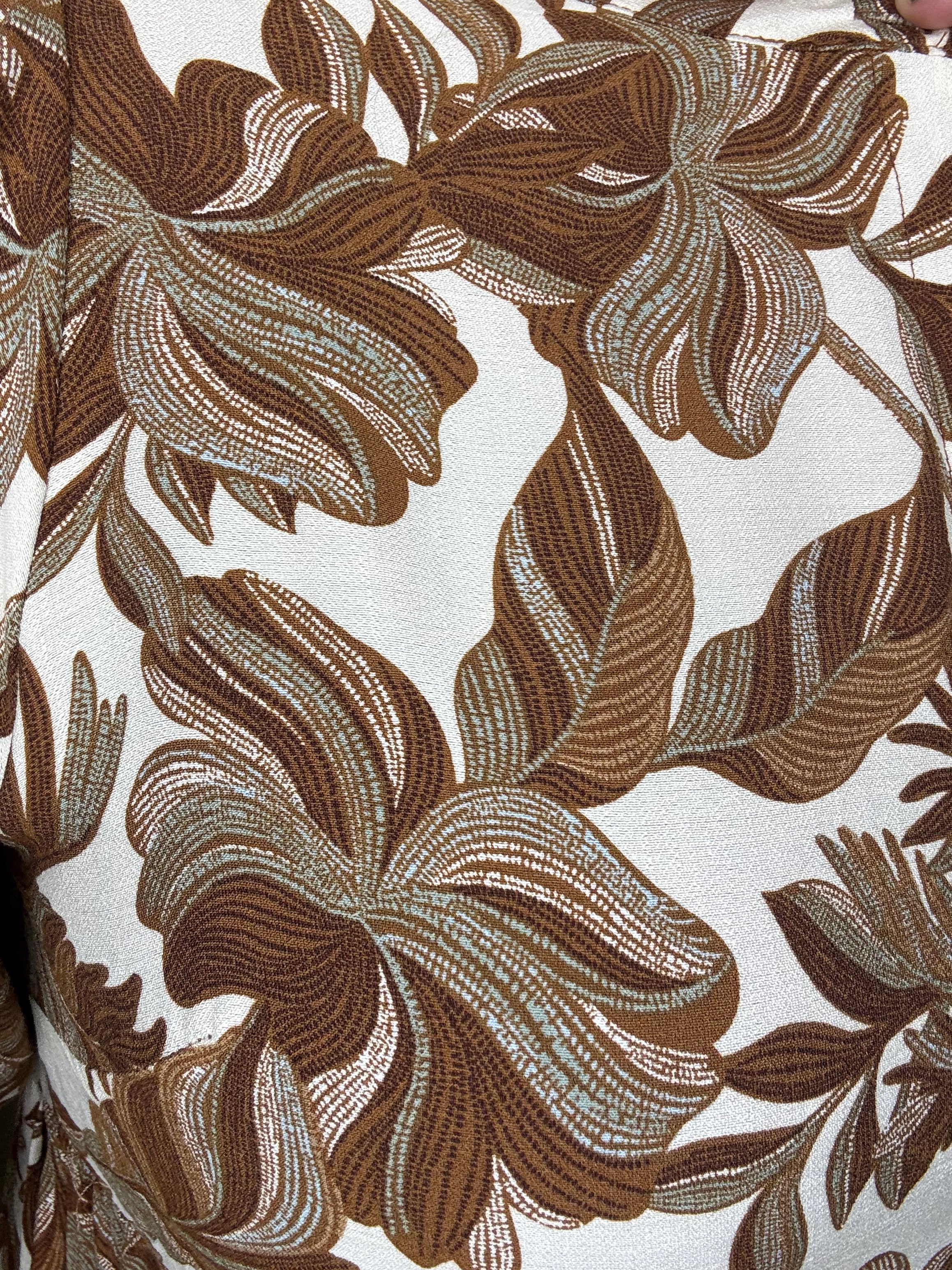 • Boho-inspired leaf print in warm, natural tones