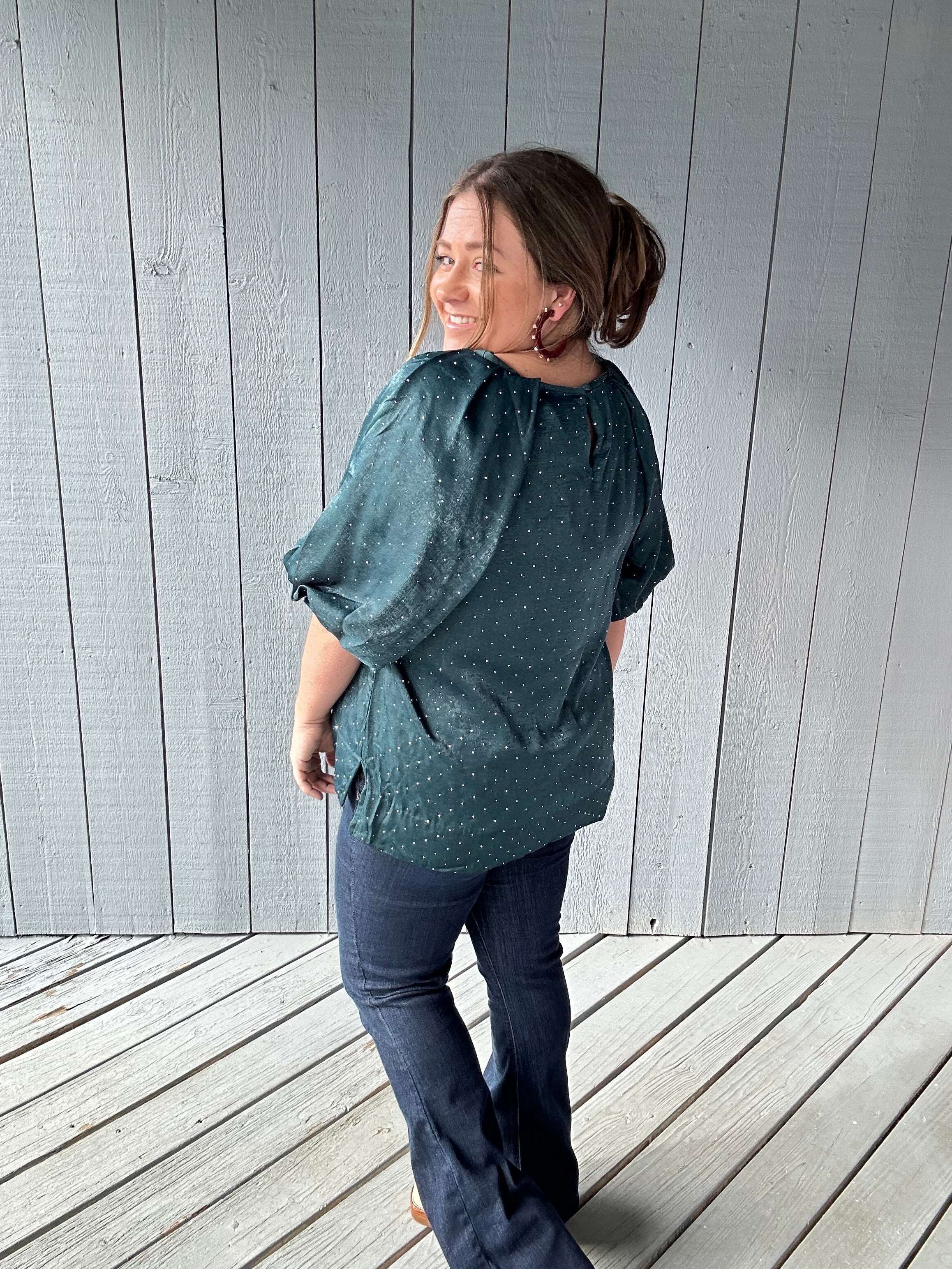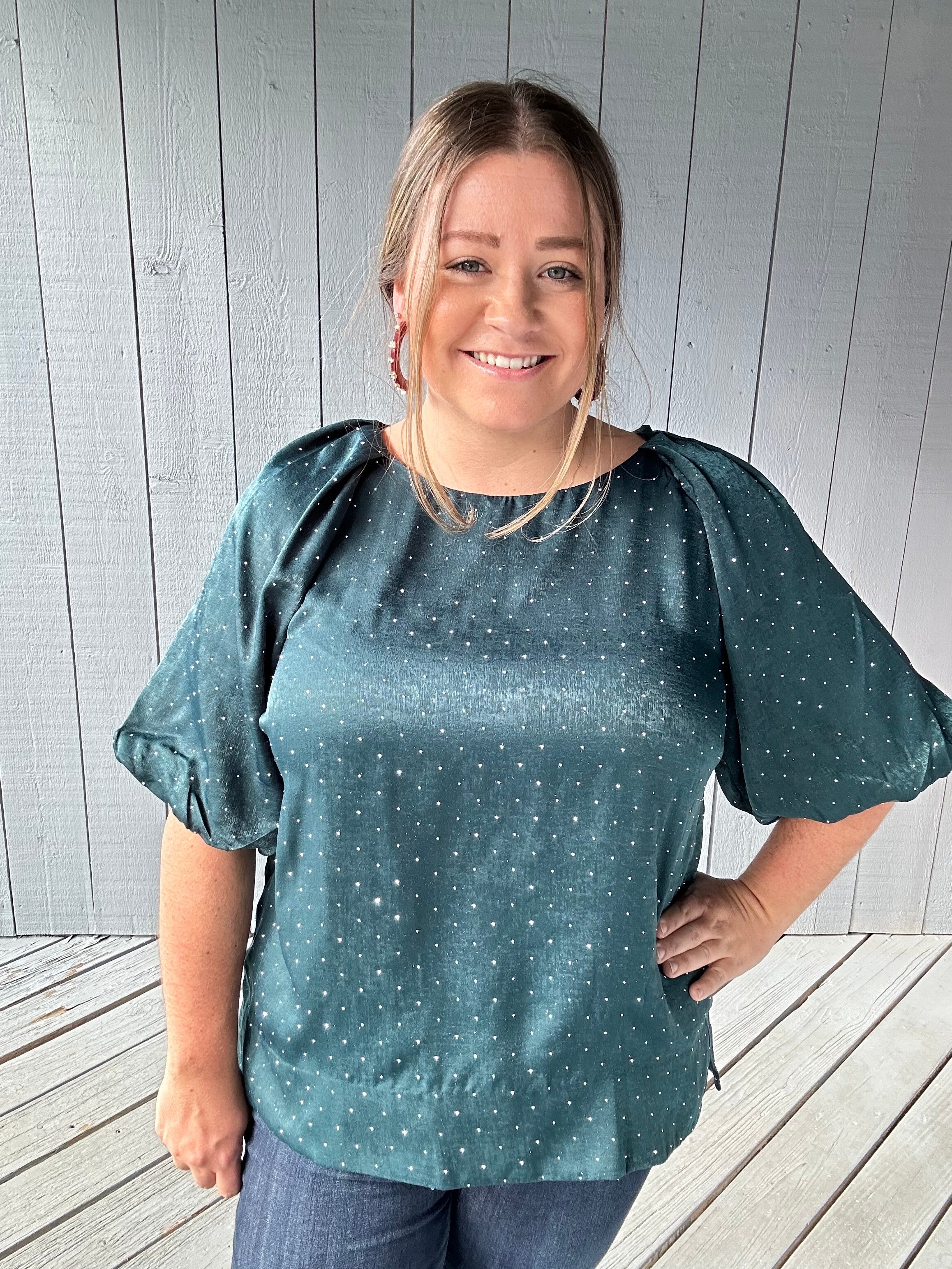 Pair this stunning satin top with tailored pants or a pencil skirt for a chic evening look. For a festive twist, style it with dark denim and heels, letting the rhinestones do the sparkling.