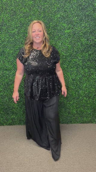 The Sparkle & Bow Sequin Top brings a perfect mix of glam and charm to your wardrobe. With dazzling sequins across the front and a sweet contrast bow tie detail in the back, this top makes a statement from every angle. The drop shoulder and round neckline keep it relaxed and flattering, while the soft lining ensures comfort for all-day or all-night wear.