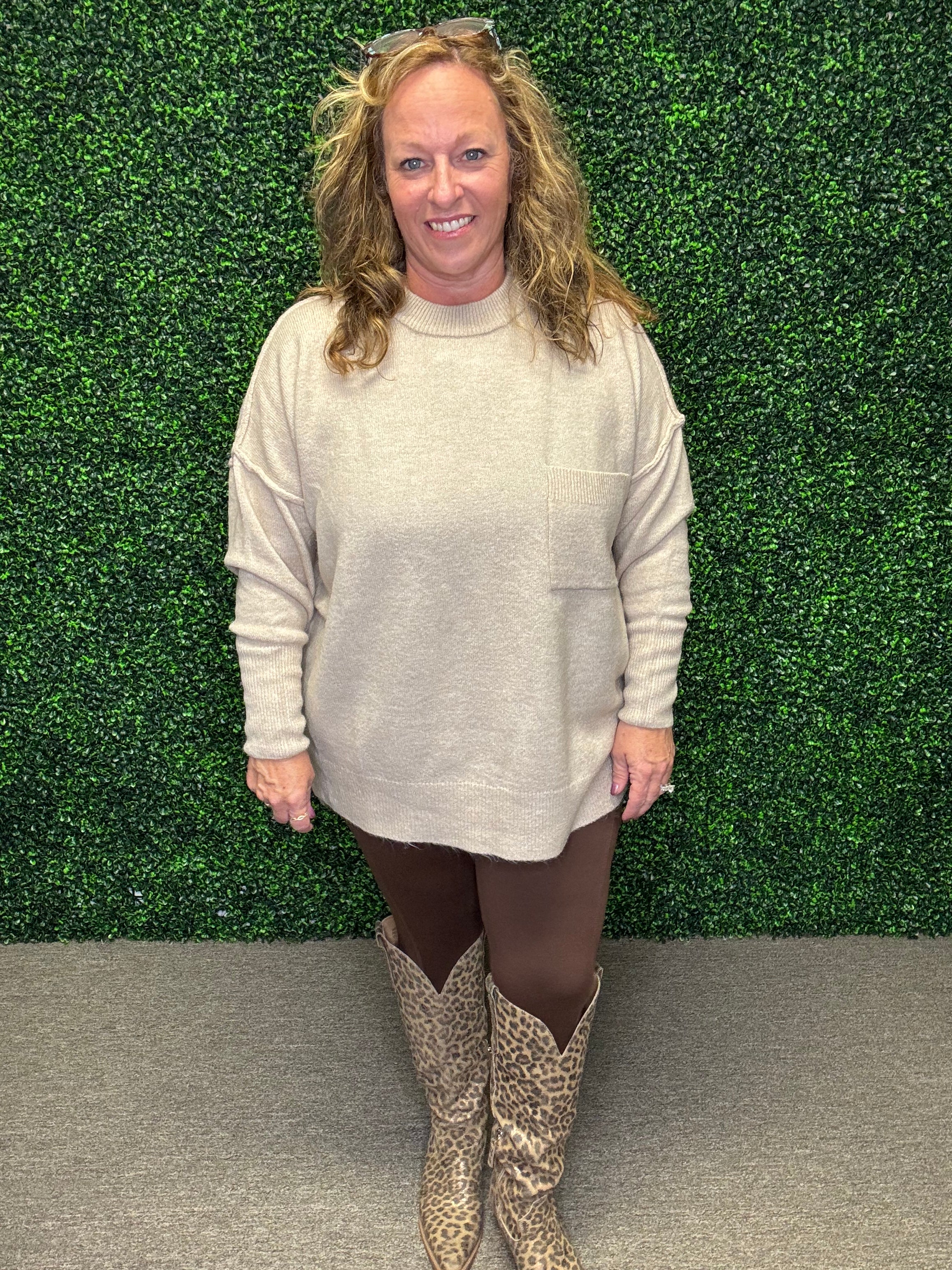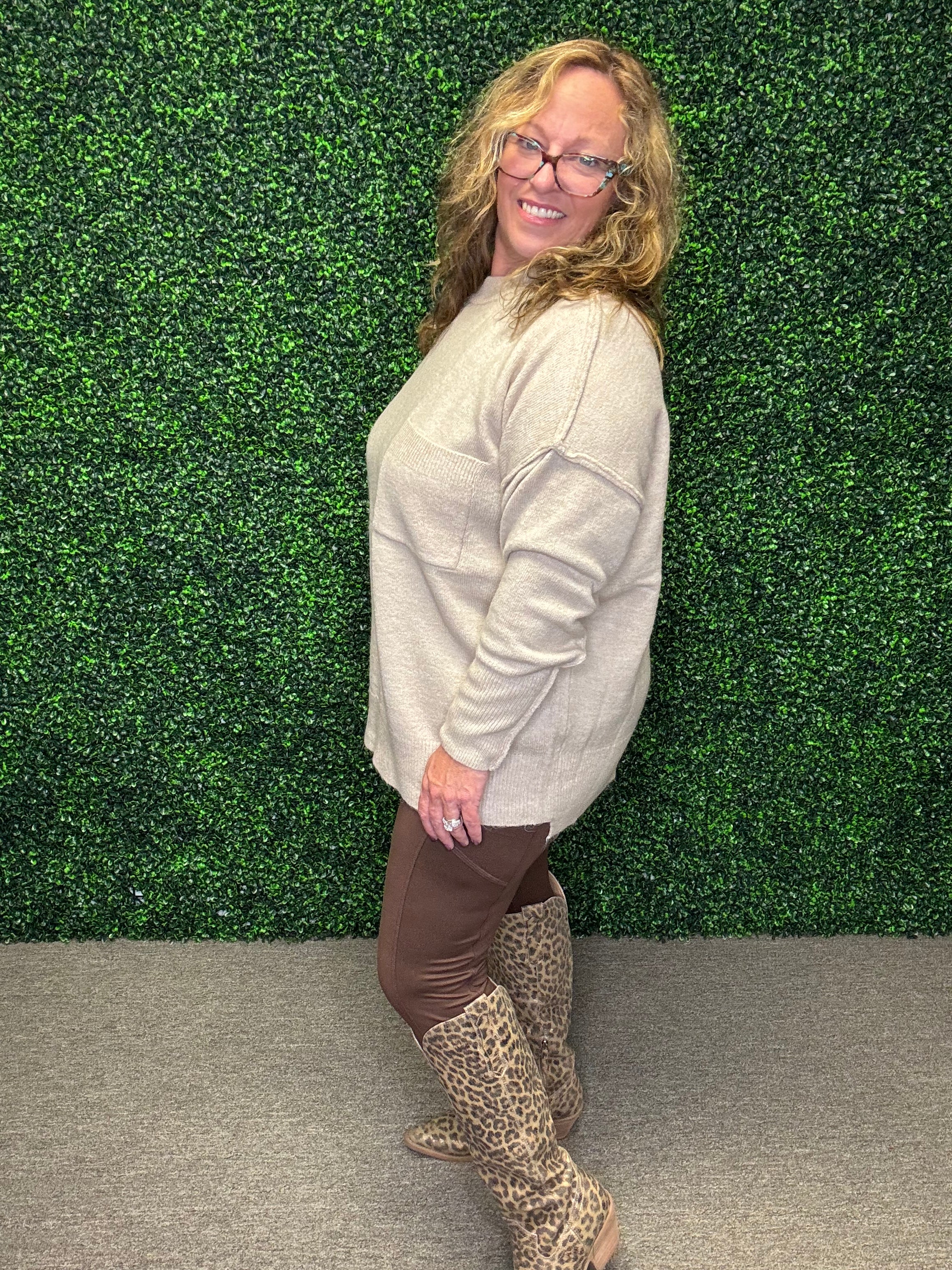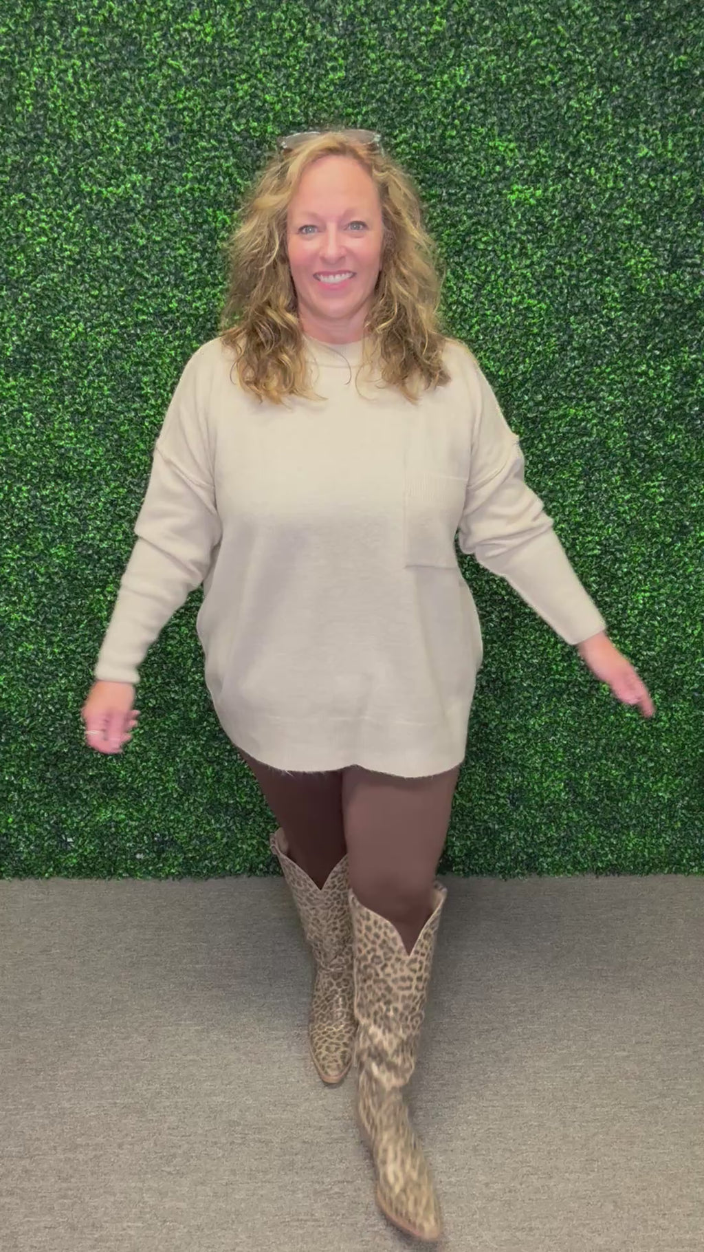 Cozy, chic, and effortlessly stylish, this brushed melange sweater is a cold-weather favorite. Crafted from soft Hacci knit fabric, it’s designed with a timeless crew neckline and a functional chest pocket for a laid-back yet polished look. Perfect for layering or wearing solo, this piece combines comfort and versatility with ease.