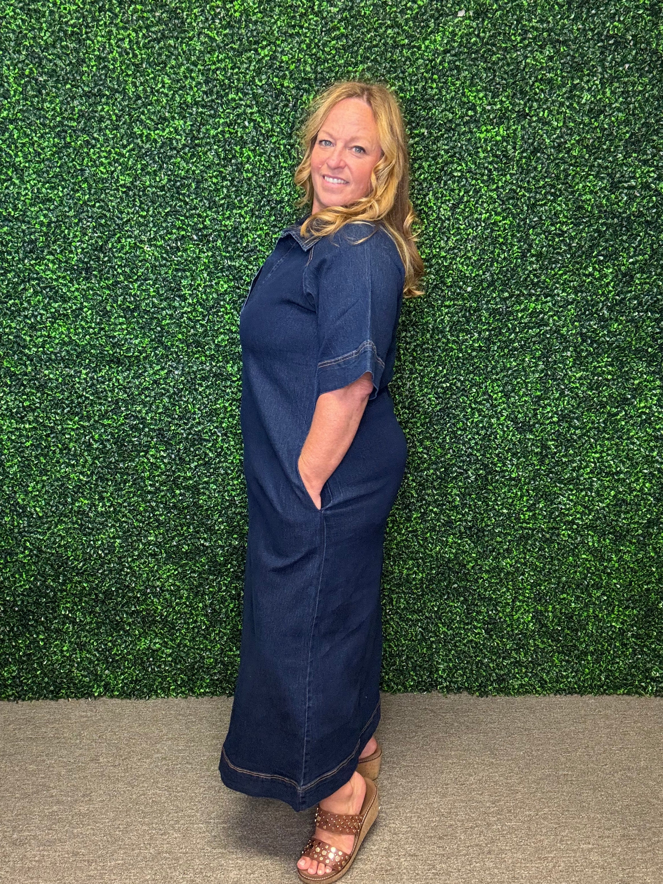 Classic meets contemporary in The Downtown Denim Dress by Lovelo X Gee Gee. This high-quality denim shirt dress features a rich dark wash, flattering silhouette, and thoughtful details for a look that’s both timeless and on-trend. Designed in regular and curvy sizes, it’s the perfect piece for easy everyday wear.