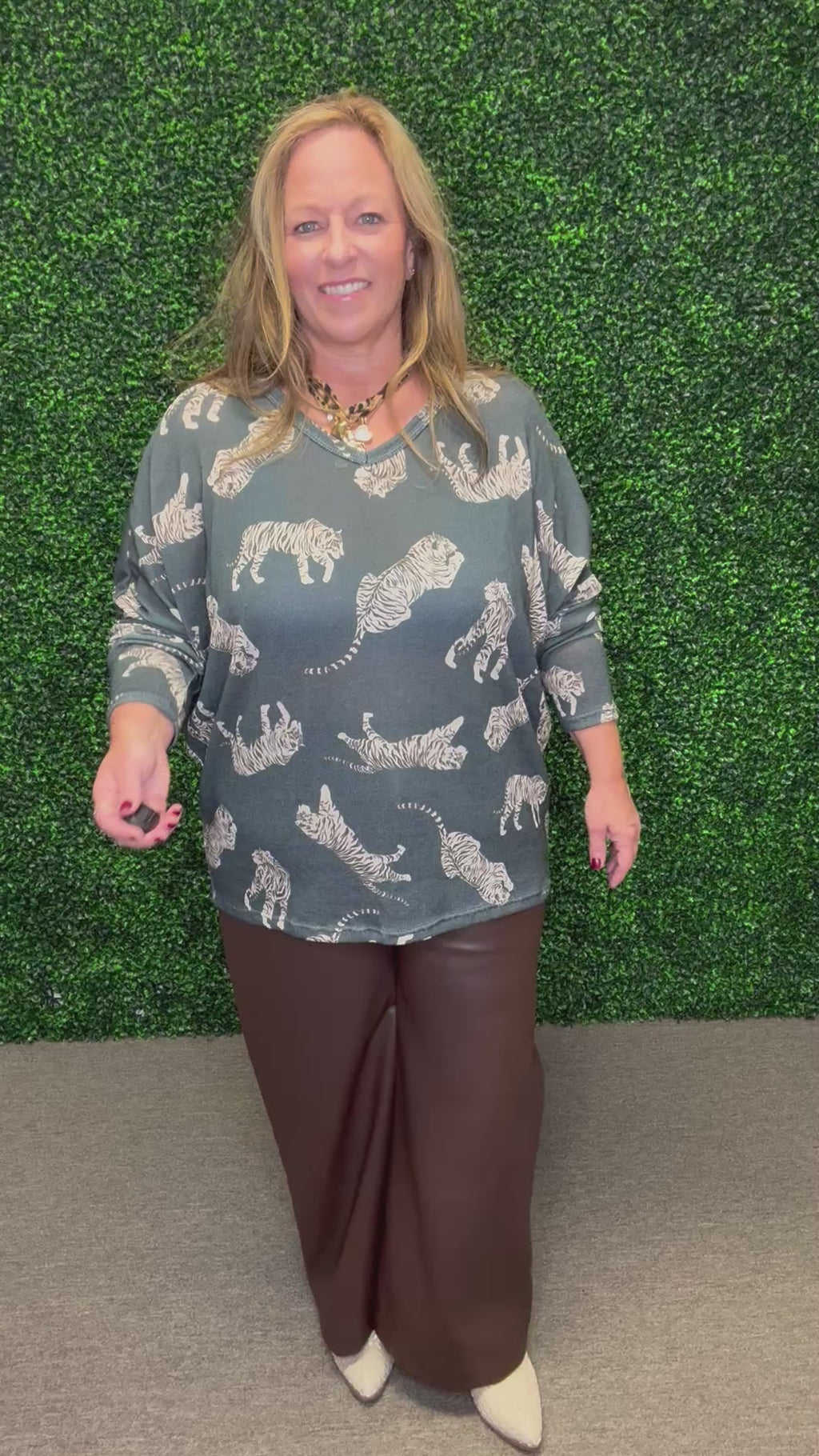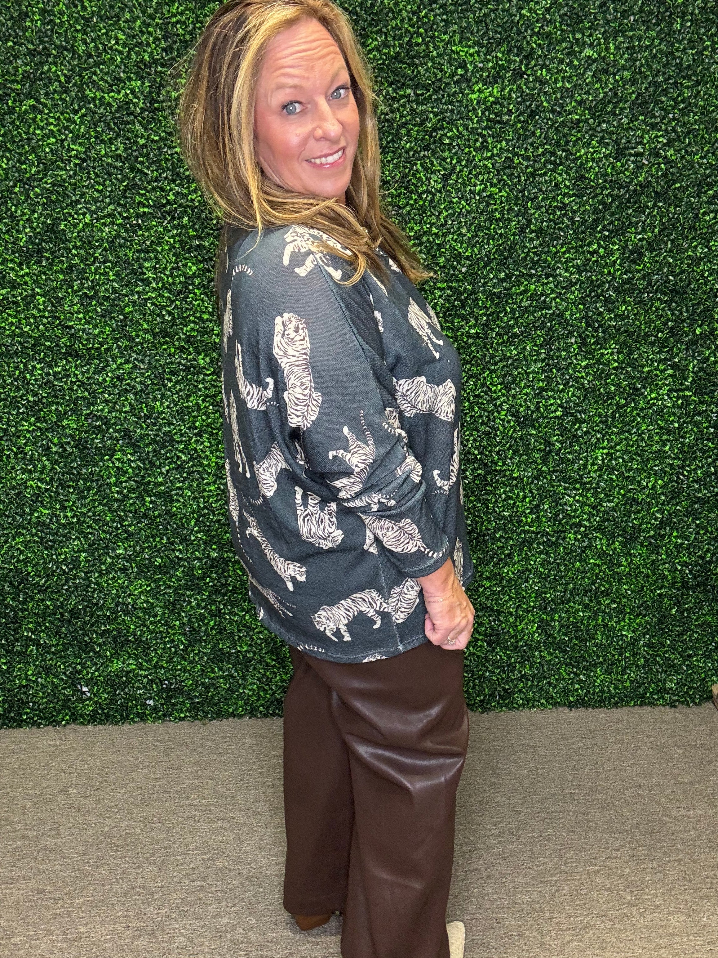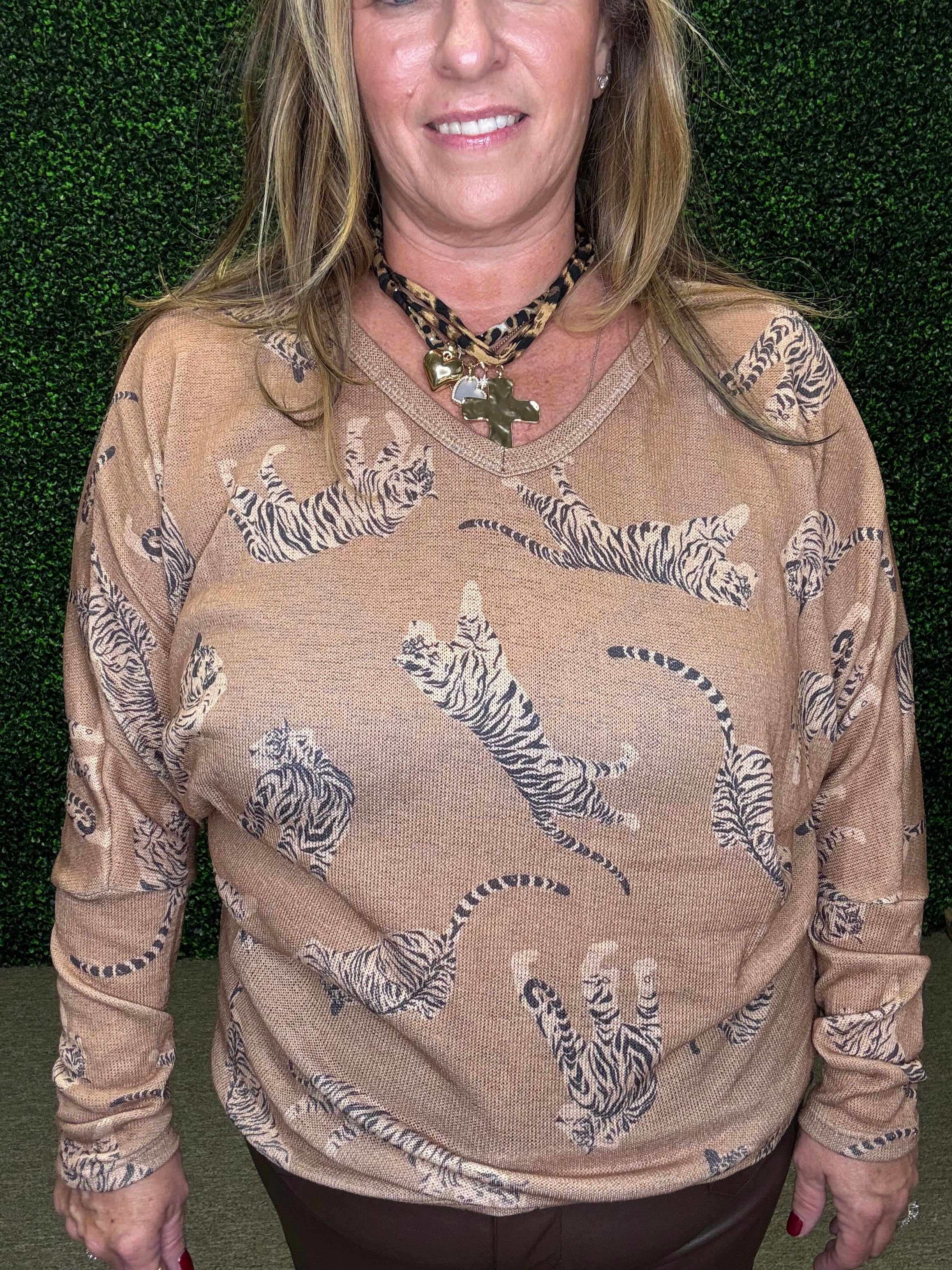 Get ready to show your fierce side in this adorable tiger-print top! The S-L comes in a warm caramel tone, while the 1X-2X features a soft gray version — both equally cute and perfect for everyday wear. Lightweight and easy to style, this Hopely piece brings fun energy to any outfit.